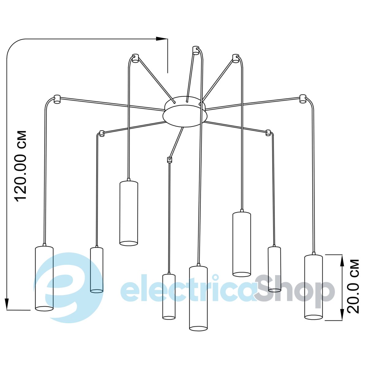 Люстра ImperiumLight Accent 47820.01.01 имеет стильное и современное оформление, применяется в жилых помещениях и коммерческих пространствах. Благодаря универсальному дизайну, ее можно разместить как в гостиной или спальне, так и в ресторане, галерее. Изготовлена из металла. Диаметр плафона – 5,6 см, высота – 20 см.