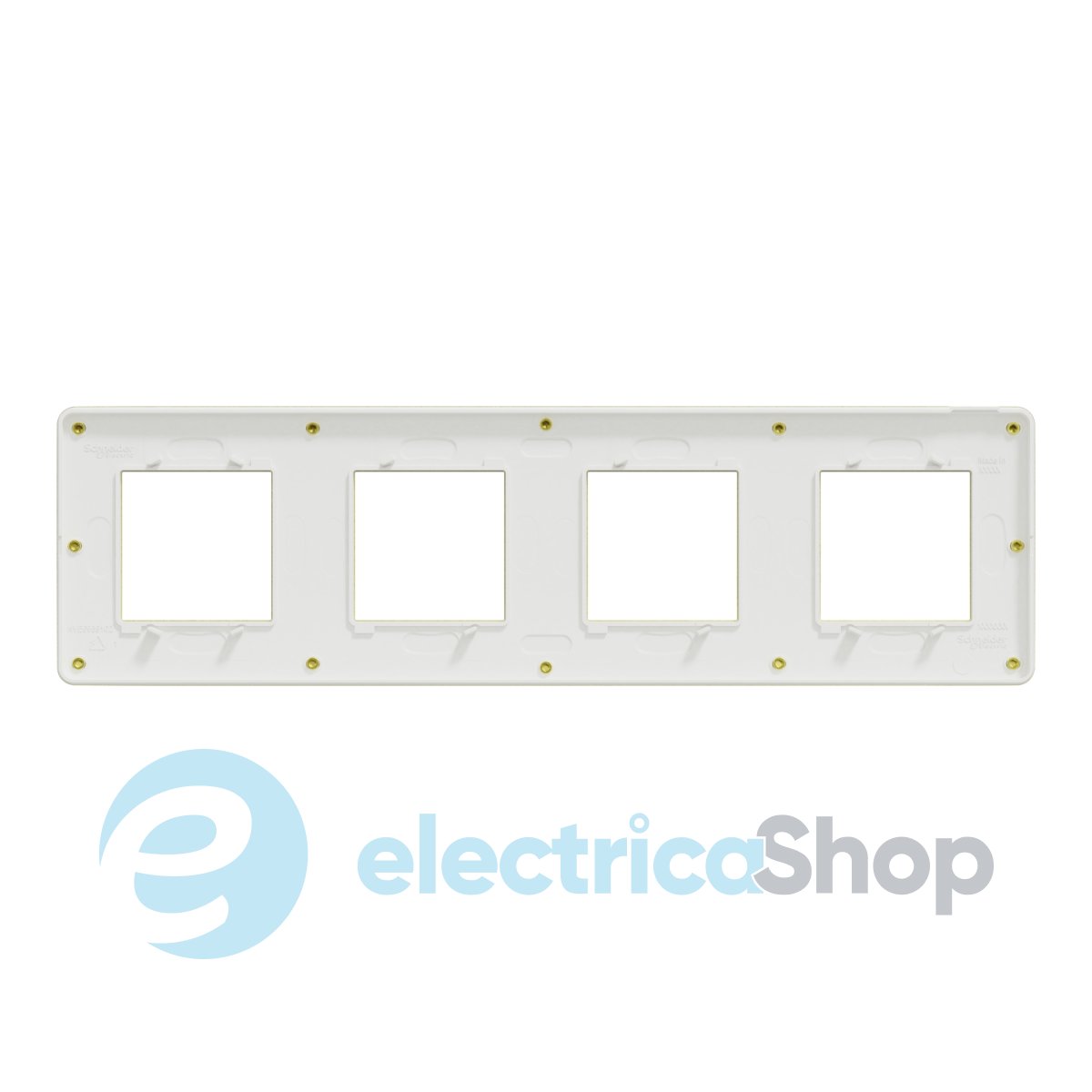 Установочная рамка имеет 4 посадочных места для универсальных механизмов из коллекции Unica New.