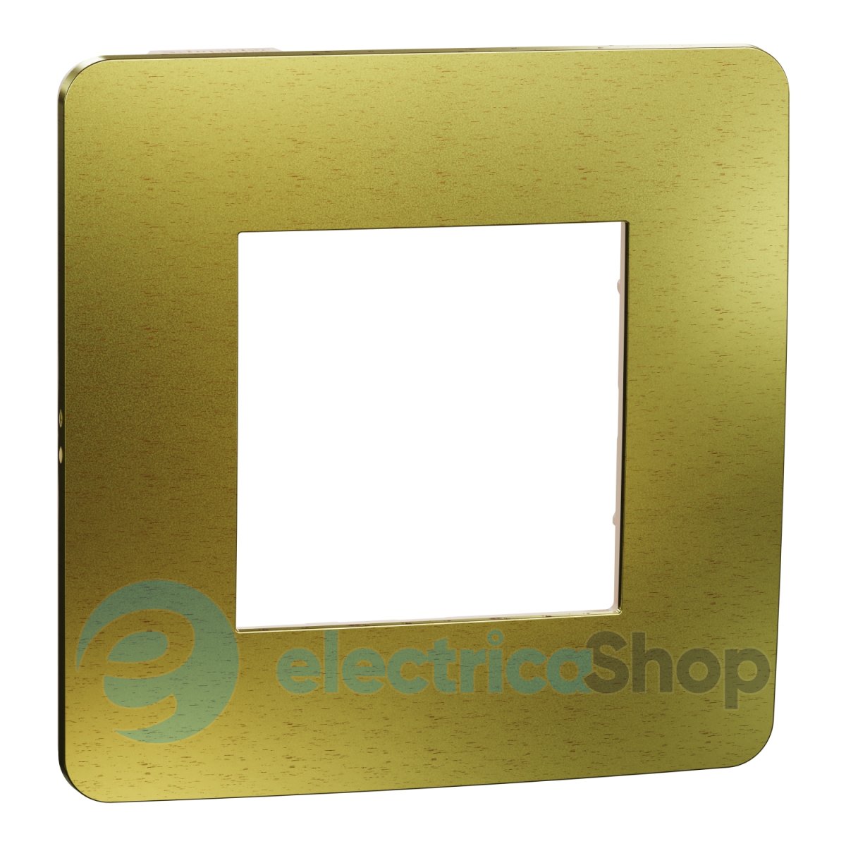 Поверхность рамки обработана по технологии Brushed finish и дополняет коллекцию Unica Studio Metal матовым вариантом цвета золото/бежевый.