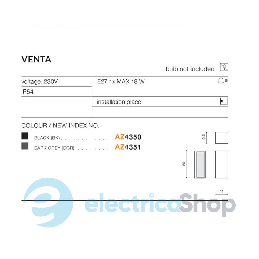 Уличный настенный светильник AZzardo Venta IP54 AZ4351 станет настоящим украшением для современного дизайна, создаст красивые световые акценты. Материал – метал, акрил. Можно использовать во влажной среде – степень защиты IP54.