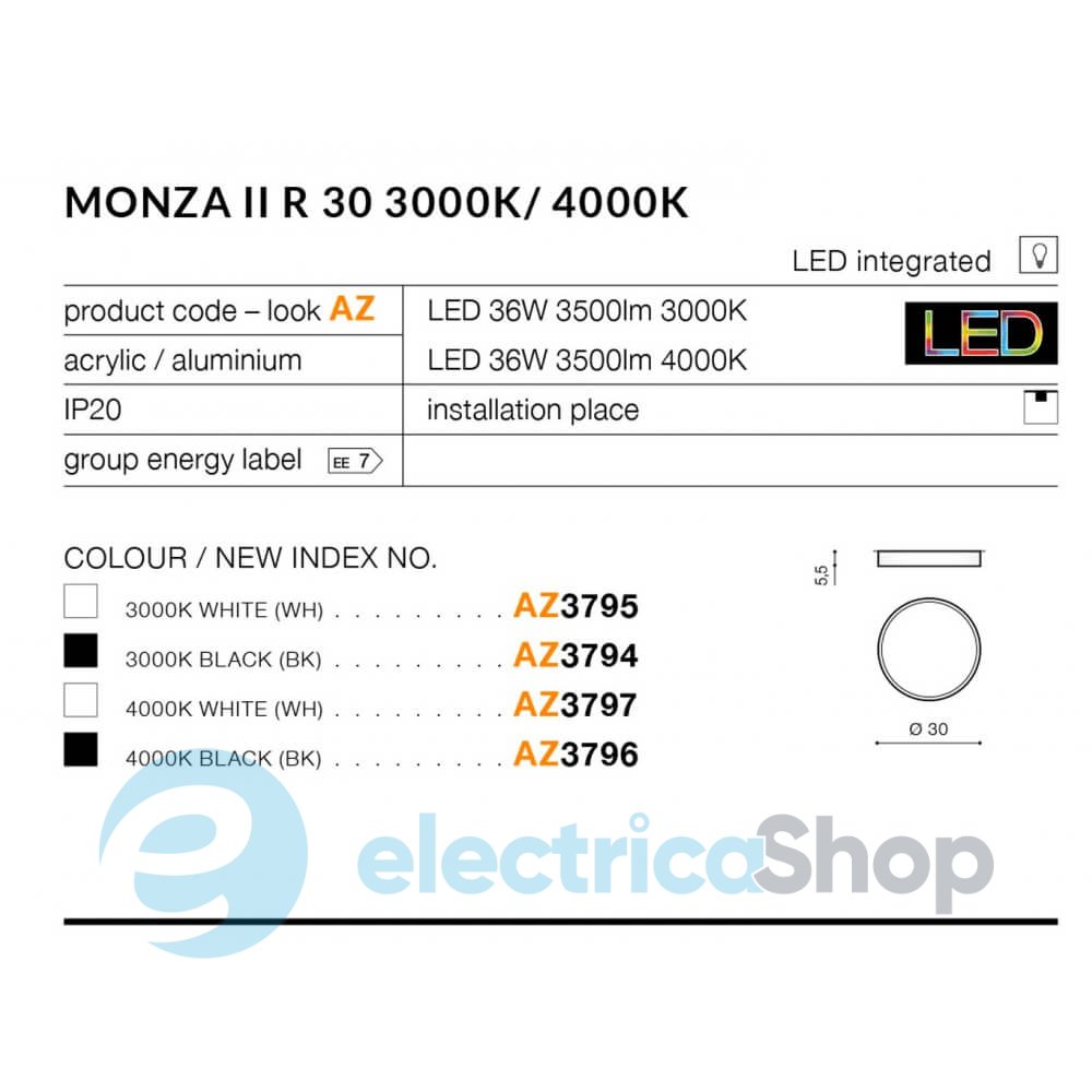 Потолочный светильник AZzardo MONZA II R 30 AZ3795 3000K – это универсальный дизайн, который позволяет сочетать его с любым интерьером в современном или классическом стиле. Изготовлен из алюминия и акрила. Имеет встроенный LED-модуль на 36W, цветовая температура – 3000K (теплый белый).