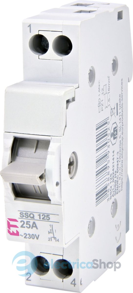 Переключатель SSQ 2421415 (это однополюсный перекидной рубильник) предназначен для прямой коммутации нагрузок небольшой мощности (40А), либо коммутации с помощью дополнительных контакторов или силовых реле.