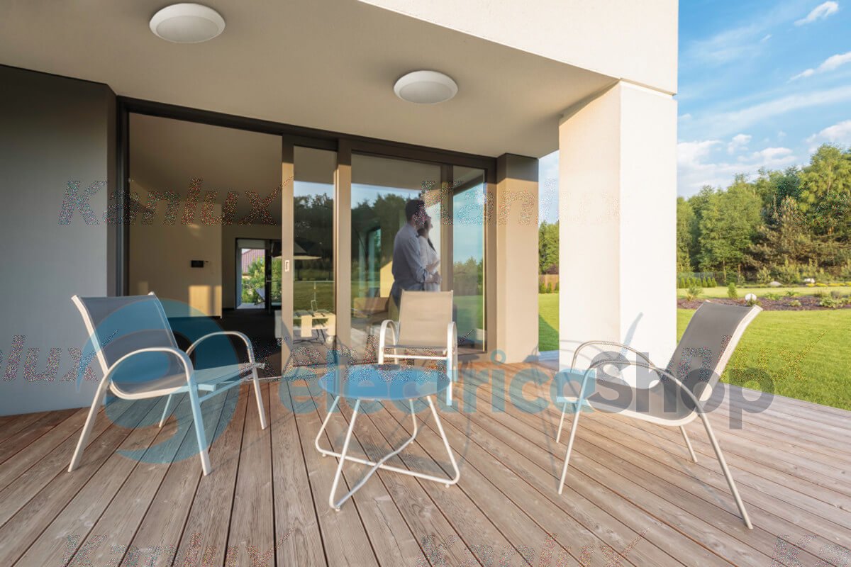Потолочный светильник Kanlux DABA N LED SMD DL-22W (19063) прекрасно впишется в современный интерьер и дополнит дизайн любого помещения. Может использоваться на улице, на балконе и террасе, благодаря высокой степени защиты от пыли и влаги IP66. Имеет встроенный LED-модуль и датчик движения и сумерек. Дальность обнаружения датчика — до 8 м, время работы — от 10 сек до 10 мин, угол обнаружения движения — 360°. Функция STAND BY DIMMING означает, что по истечении запрограммированного времени, при отсутствии движения, потолочные светильники переходят в режим ожидания и уменьшают световой поток до 20%.