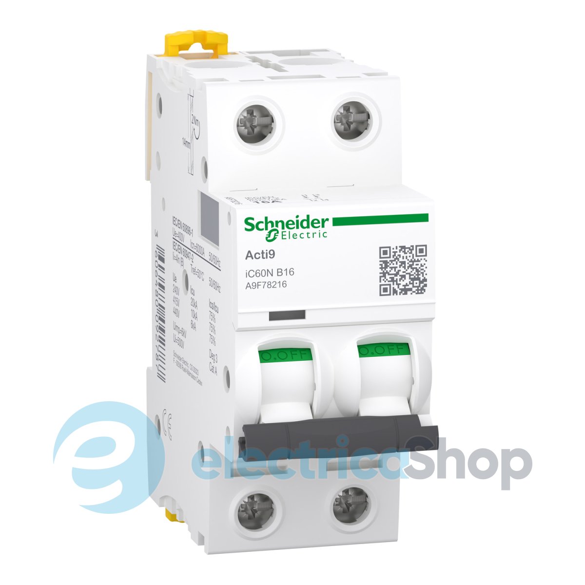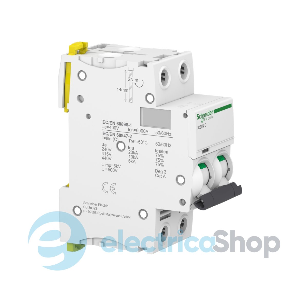 Двухполюсный автоматический выключатель iC60N Шнайдер Электрик предназначен для защиты от токов короткого замыкания и тепловой перегрузки.
