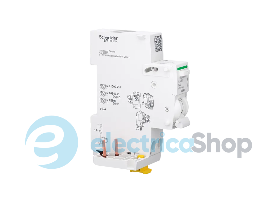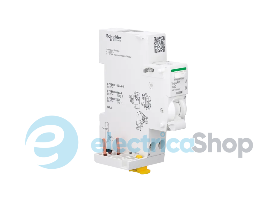 Данный защитный прибор Acti9 VigiARC iC40 представляет собой устройство обнаружения дугового замыкания с дополнительным блоком защиты от остаточного тока.