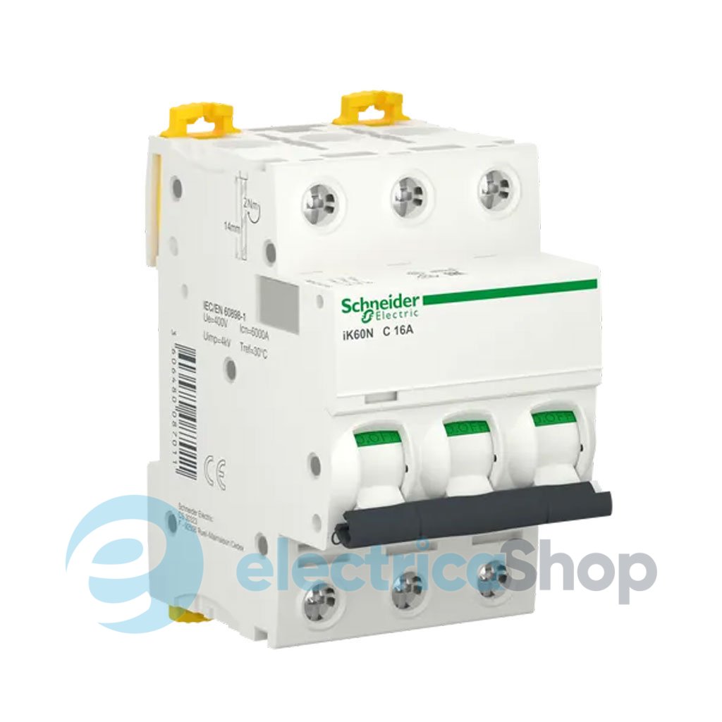 Трехполюсный автоматический выключатель A9K24316 iK60 Шнайдер Электрик предназначен для защиты от токов короткого замыкания и тепловой перегрузки.