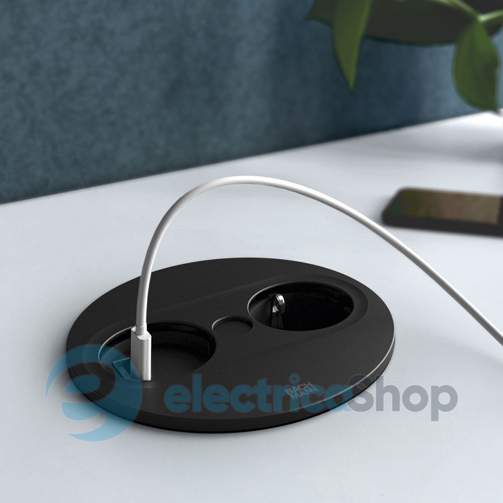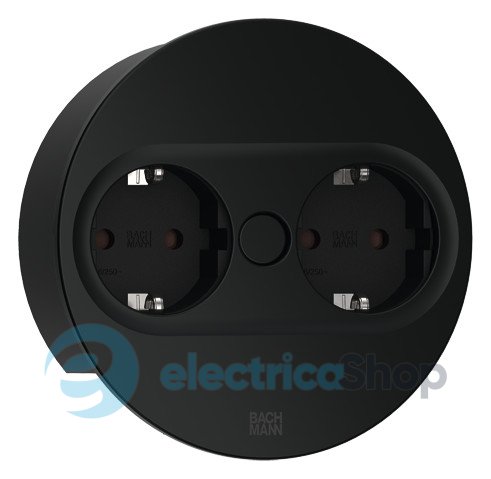 Розеточный модуль 946.100 от Bachmann изготовлен в металлическом корпусе, оснащен 2-я электрическими розетками стандарта Schuko и имеет современный дизайн линейки TWIST2.