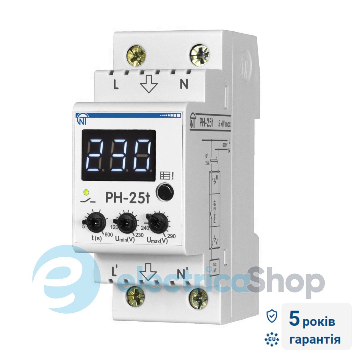 Реле напряжения РН-25t предназначено для защиты бытового и промышленного электрооборудования (холодильников, кондиционеров, стиральных машин, теле-, видео- и аудиотехники и т.п.) от недопустимых колебаний напряжения в сети и последствий обрыва нейтрали (нуля).