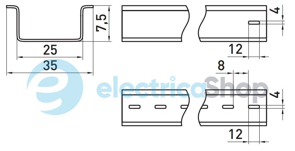 • Стандартная неперфорированная дин-рейка ТН35 длиной 1 метр.
