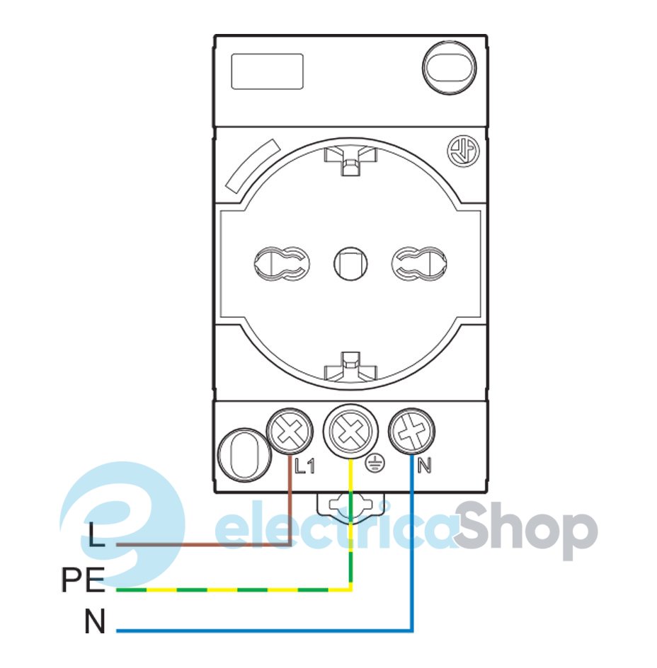 Розетка имеет слот для идентификационной бирки и совместима с Schuko (немецкий стандарт) и итальянским Bipasso.- Номинальное напряжение: 230 В АС (50/60 Гц)