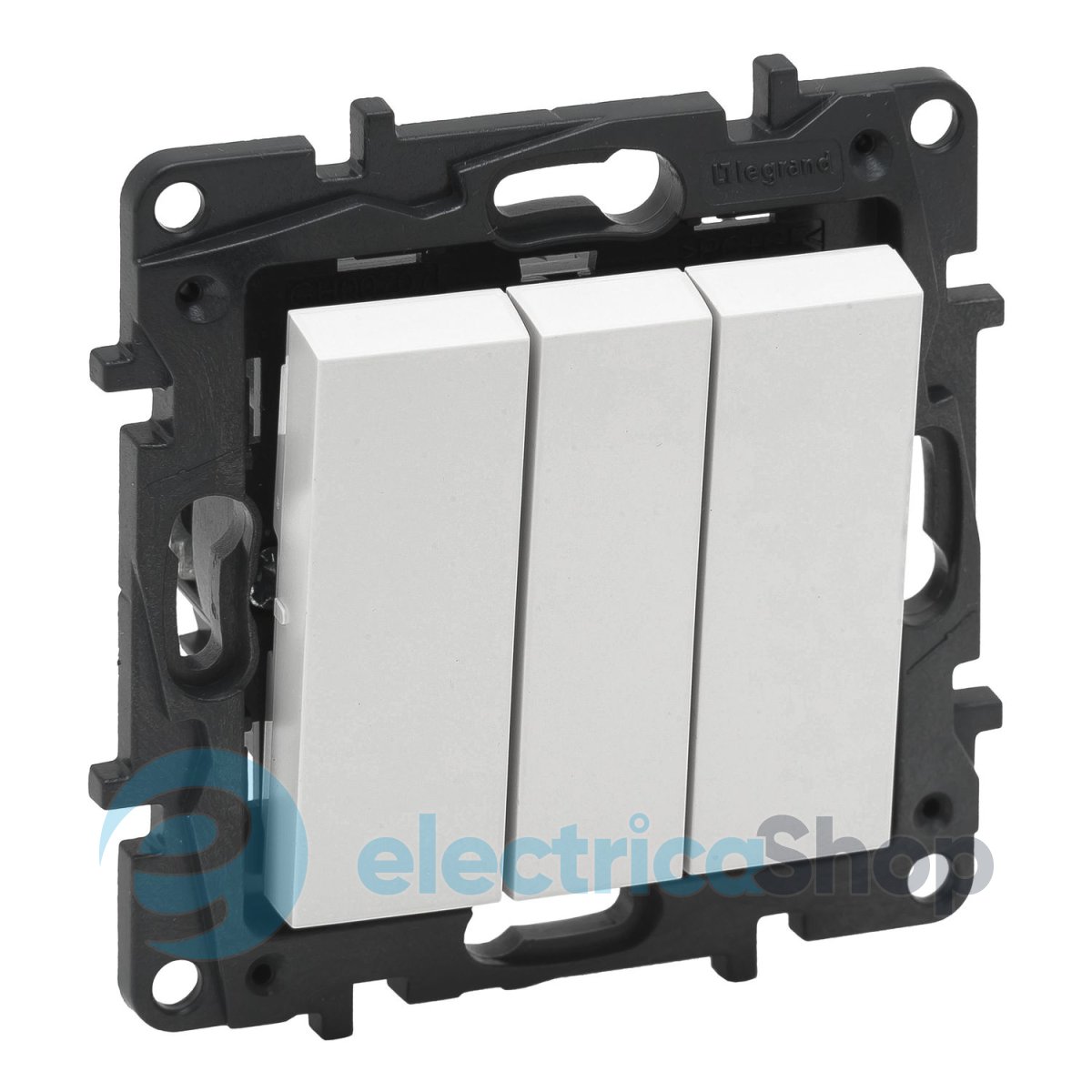 Выключатель 3-клавишный для включения/выключения одной группы освещения из одного места.