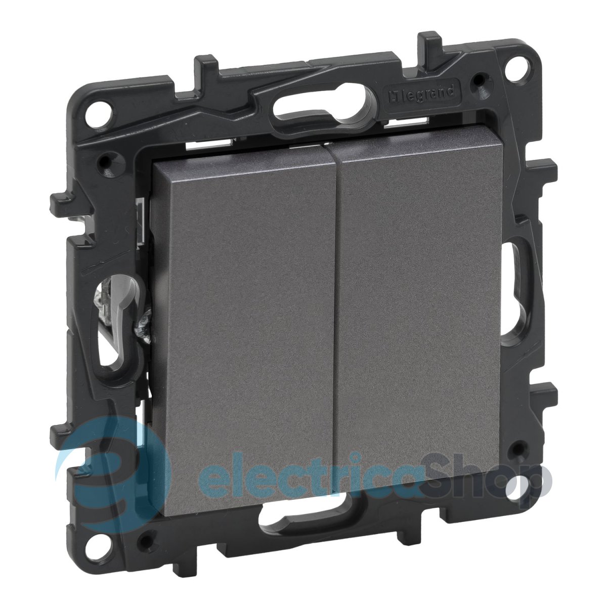 Выключатель кнопочный 1-кл 6А автоматические клеммы Legrand NILOE STEP 863409 цвет cталь