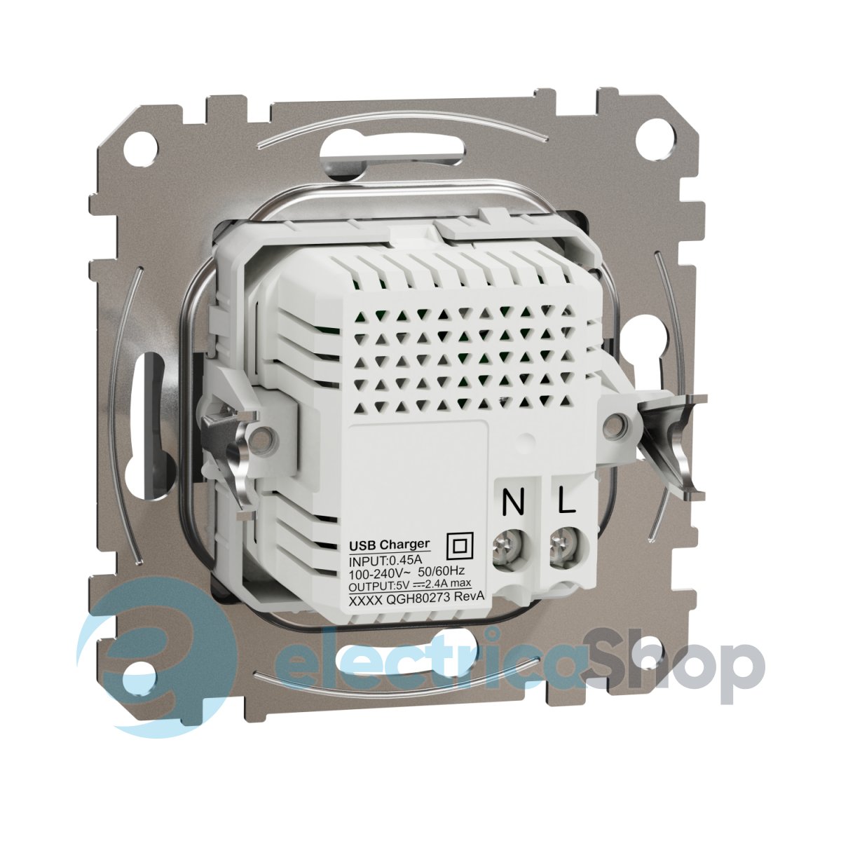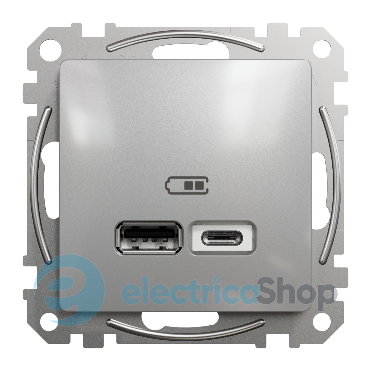 Двойная USB-розетка с разъемами типа А+С представляет собой аксессуар серии Sedna Design & Elements от Schneider Electric. USB-разъем для зарядки имеет глянцевую поверхность цвета алюминия й и имеет следующие размеры: