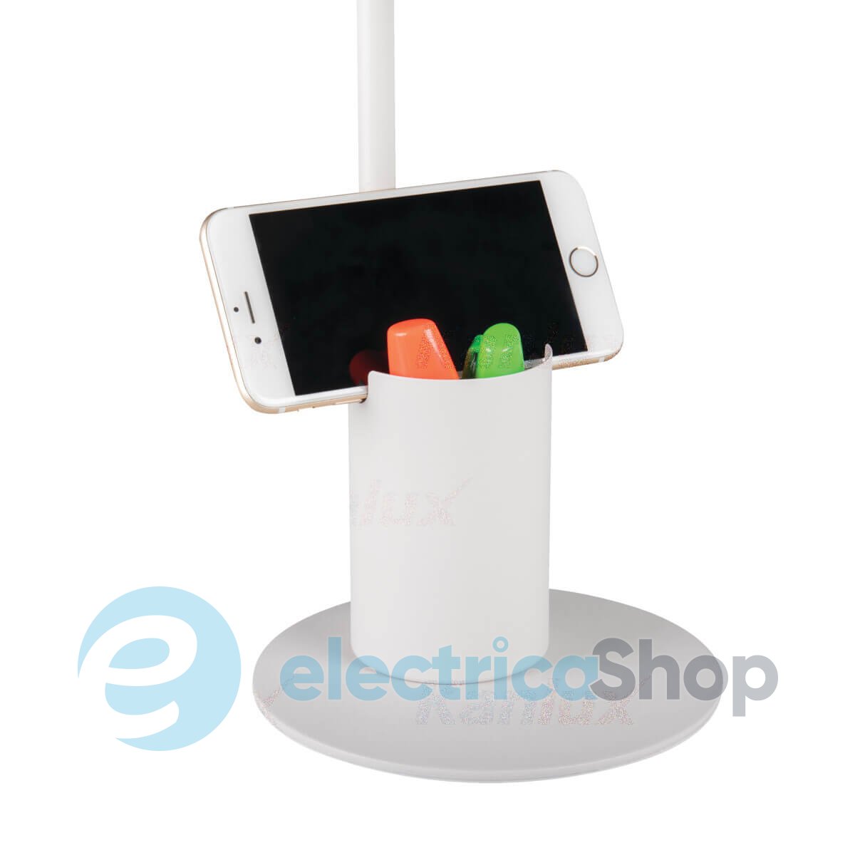 Настольная лампа светодиодная Kanlux RAIBO E27 White (36281) имеет стильный и лаконичный дизайн. Данная модель не занимает много места, позволяет регулировать направление света. Выключатель находится на проводе. На корпусе есть удобный органайзер для канцелярии и подставка для смартфона.