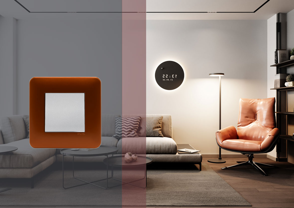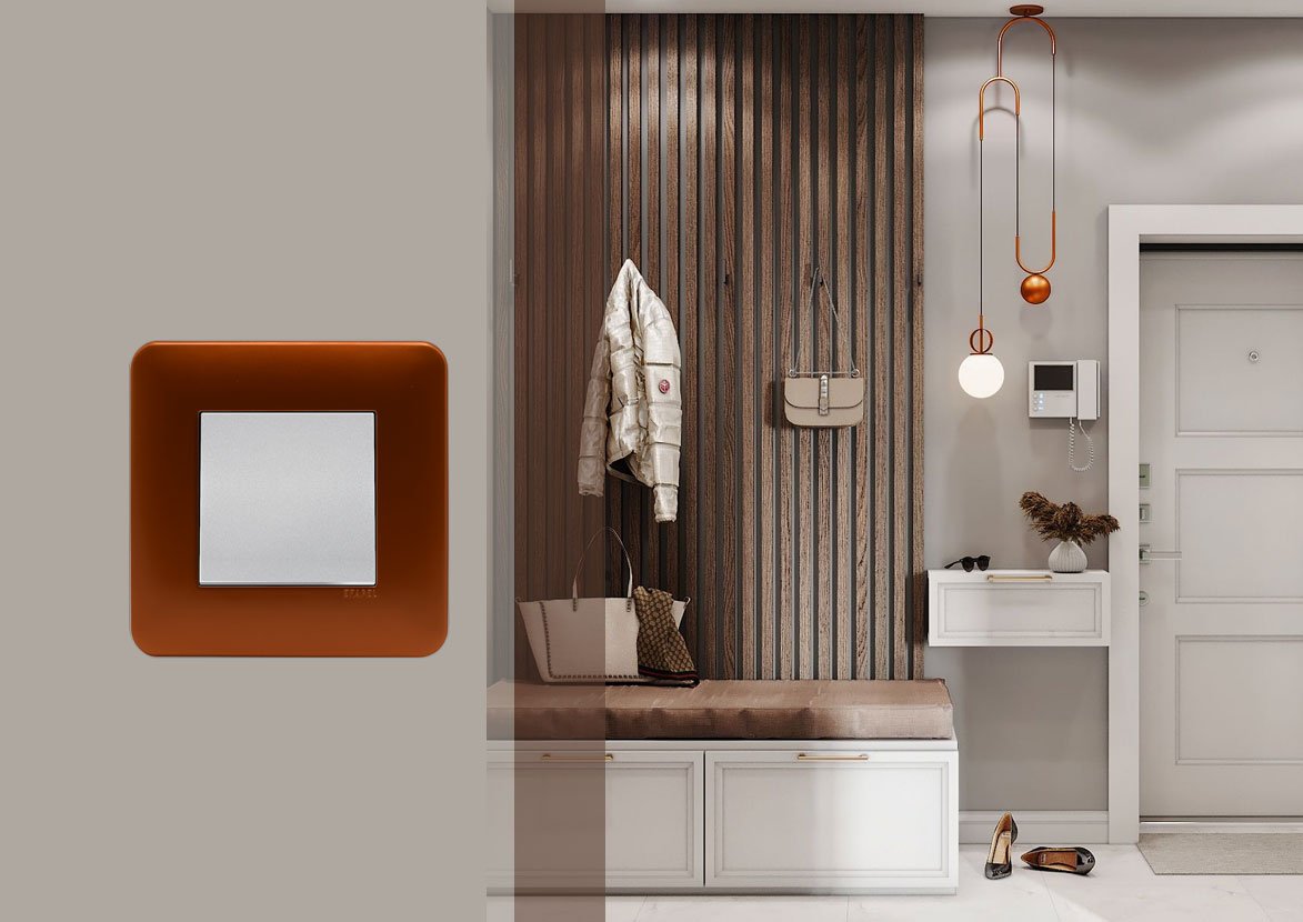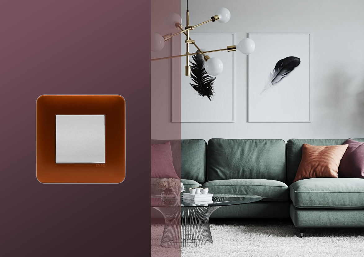Коллекция LATINA предлагает комплексное решение с простым дизайном для вашего дома.Пример рамок в медном цвете Latina Efapel в интерьере