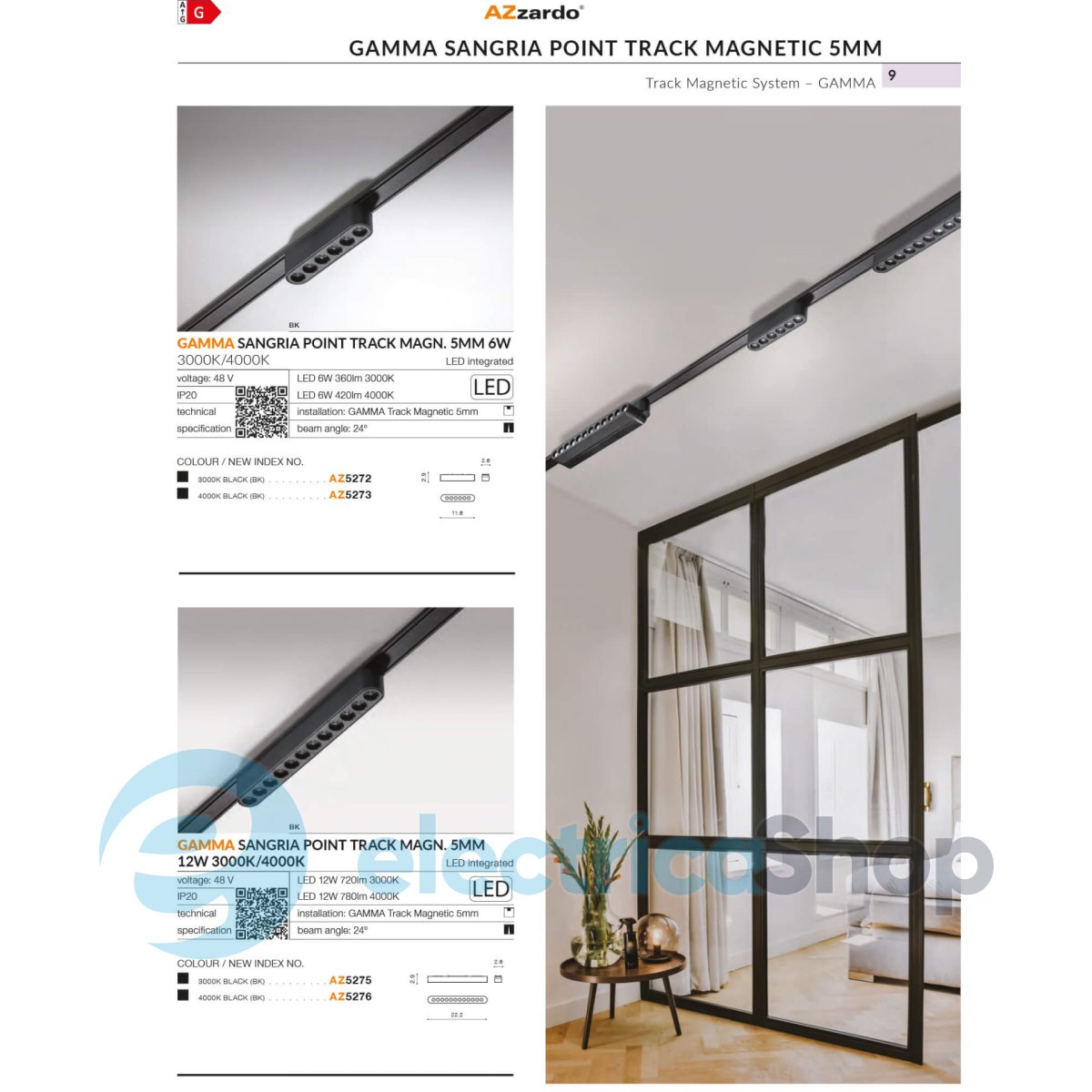 Магнитный трековый светильник AZzardo GAMMA SANGRIA TRACK MAGNETIC POINT 5mm 12W 4000K BK AZ5276