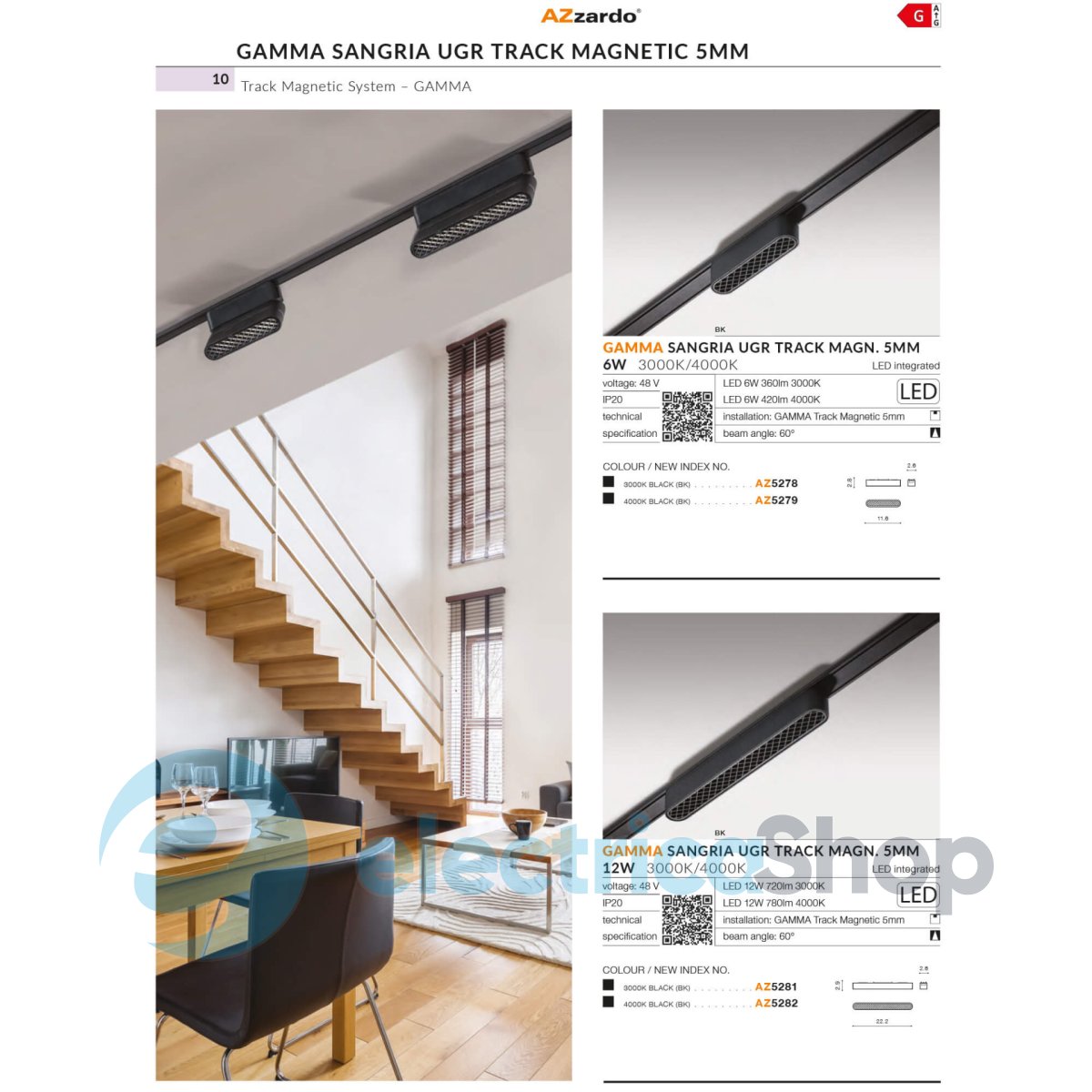 Магнитный трековый светильник AZzardo GAMMA SANGRIA UGR TRACK MAGNETIC 5mm 6W 4000K BK AZ5279 будет хорошо смотреться в современных интерьерах, поможет создать световые акценты.
