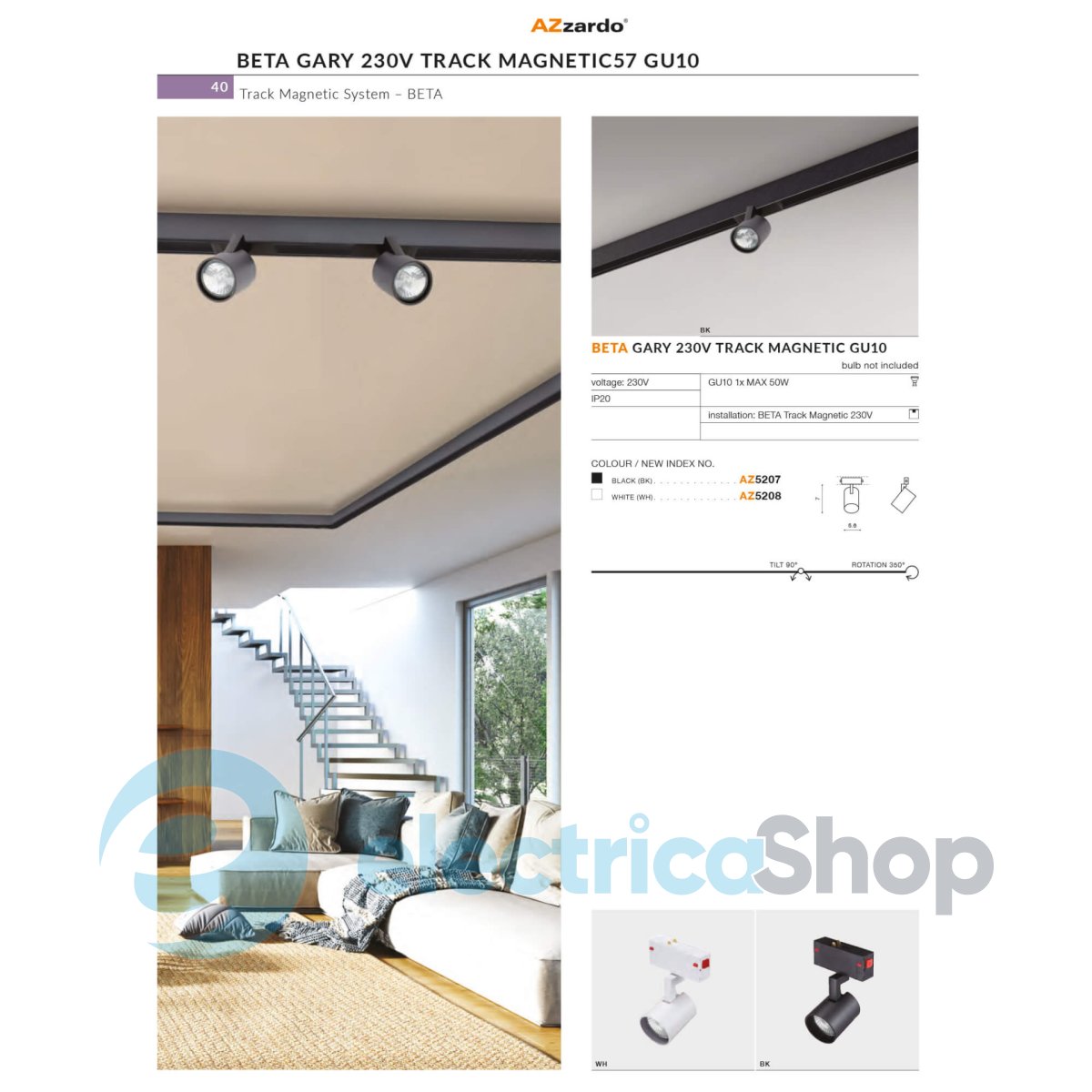 Магнитный трековый светильник AZzardo BETA GARY 230V TRACK MAGNETIC GU10 WH AZ5208 будет хорошо смотреться в современных интерьерах, поможет создать световые акценты.