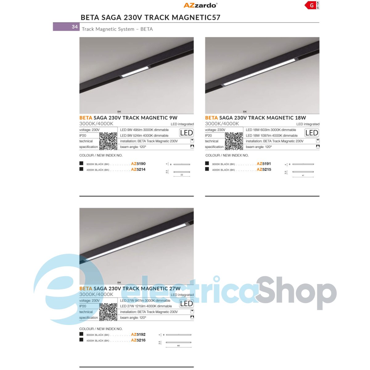 Магнитный трековый светильник AZzardo BETA SAGA 230V TRACK MAGNETIC 9W MILKY120 4000K BK AZ5214