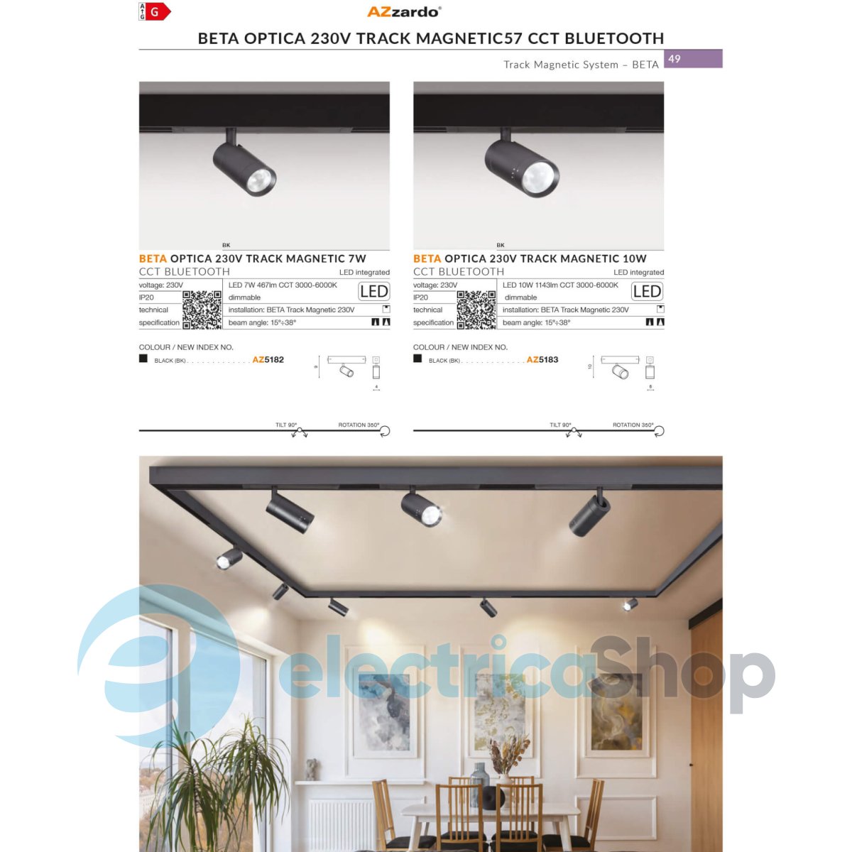 Магнитный трековый светильник AZzardo BETA OPTICA 230V TRACK MAGNETIC 7W CCT BLUETOOTH BK AZ5182 будет хорошо смотреться в современных интерьерах, поможет создать световые акценты.