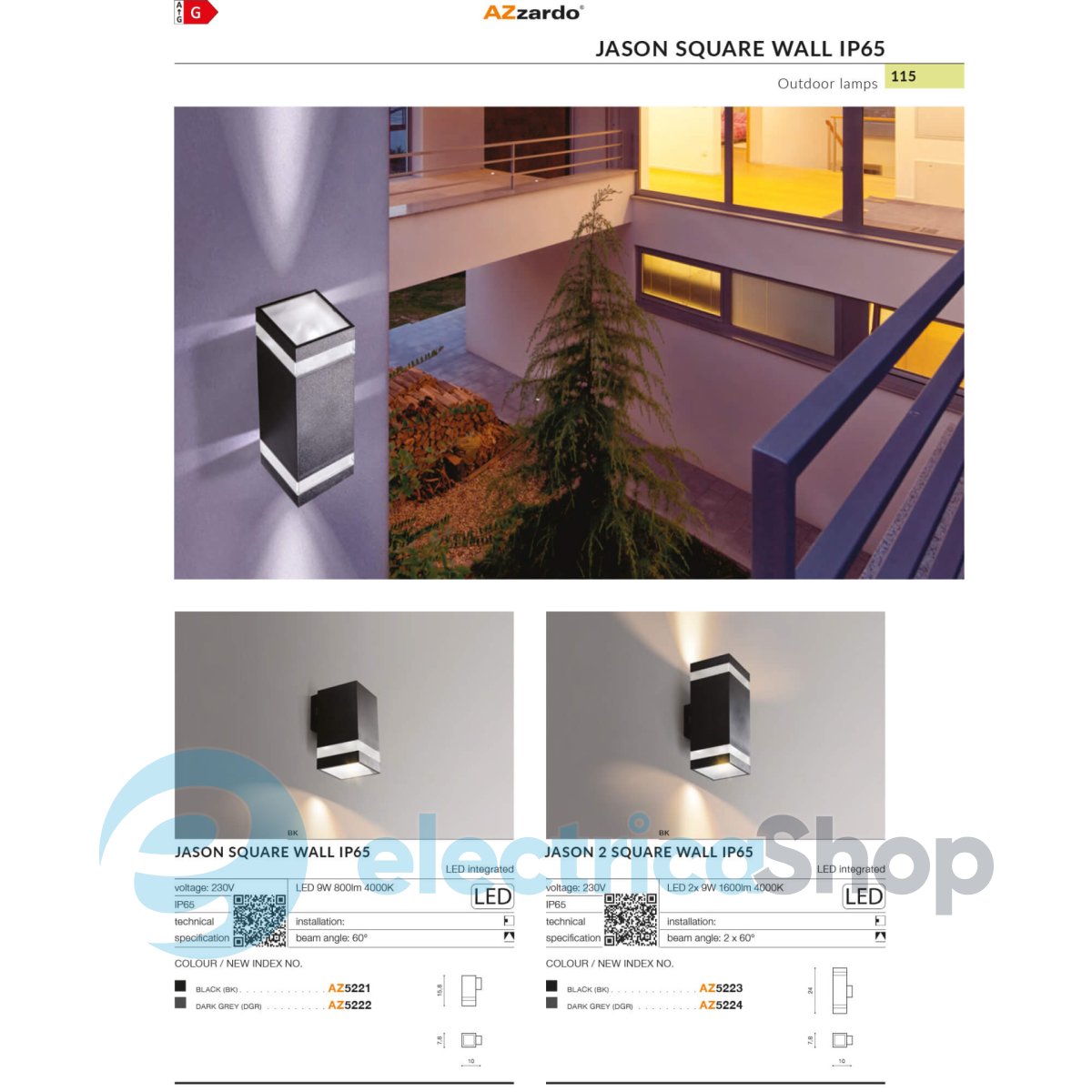 Уличный настенный светильник AZzardo JASON SQ WALL IP65 DGR AZ5222 станет настоящим украшением для современного дизайна, создаст красивые световые акценты. Свет в данной модели направлен вниз. Можно использовать во влажной среде – степень защиты IP65.