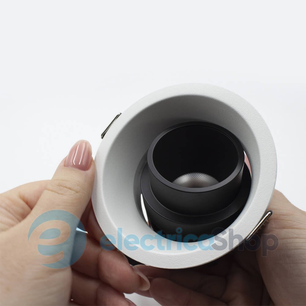 Точечный встраиваемый светильник Skarlat BINOCO RSL74090-1 1×10W WH+BK 4000K представлен в минималистичных моно оттенках. Современный дизайн корпуса светильника позволяет изделию органично вписаться в интерьеры в стиле хай-тек и лофт. Данную линейку светильников можно использовать в качестве основного источника освещения за счет ярких высокотехнологичных светодиодов. Поворотный механизм позволяет изменять направление светового потока и правильно расставлять акценты в помещении. Угол рассеивания света – 35°.