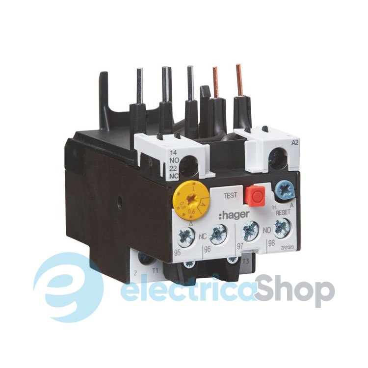 Тепловое реле перегрузки 0.6-1.0А с магнитным выключателем поставляется как дополнительное оборудование к контакторам Hager EV007...EV015.