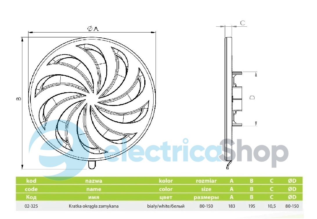 Круглая вентиляционная решетка с возможностью регулировки формы и размера была разработана для крепления на потолке. Форма отверстий в этой модели направляет воздушный поток прямо в отличие от решеток, предназначенных для стен, где жалюзи направлены под углом, чтобы не вызывать ощущения прохлады в комнате..