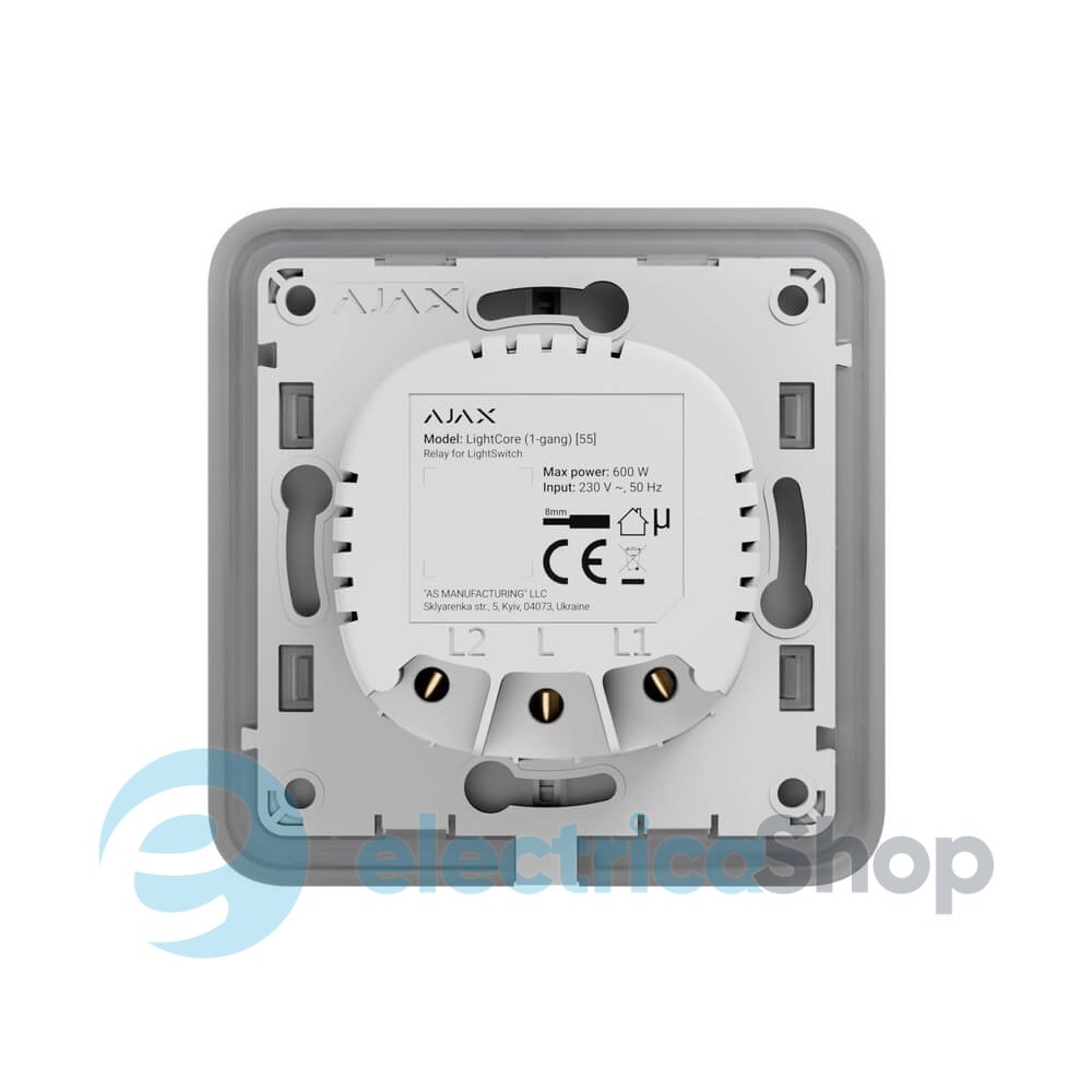 Реле одноклавишного выключателя LightCore для LightSwitch. LightSwitch это умный выключатель от Ajax имеет большую сенсорную панель, которая срабатывает как на ощупь, так и бесконтактно – достаточно просто поднять руку на расстояние 15 мм. С системой LightSwitch можно дистанционно управлять приборами, потребляющими до 600 Вт: торшерами, светильниками или шторами, жалюзи.