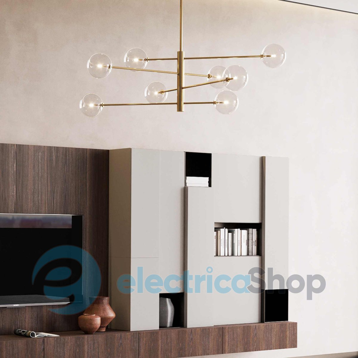 Люстра Ideal Lux Equinoxe SP8 275178 подчеркнет индивидуальность вашего дома, будет отлично смотреться в современных интерьерах. Арматура изготовлена из металла, плафоны – из дутого стекла.