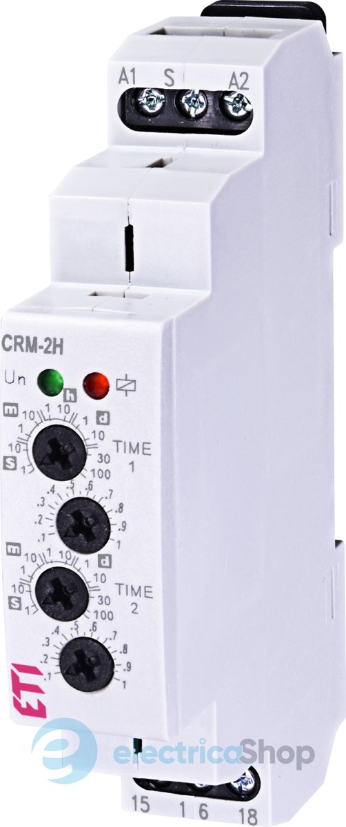 Импульсное реле CRM-2H (код 2470003) – аналоговые реле времени, циклические, с одной группой опрокидывающихся контактов и возможностью регулировки двух временных диапазонов.