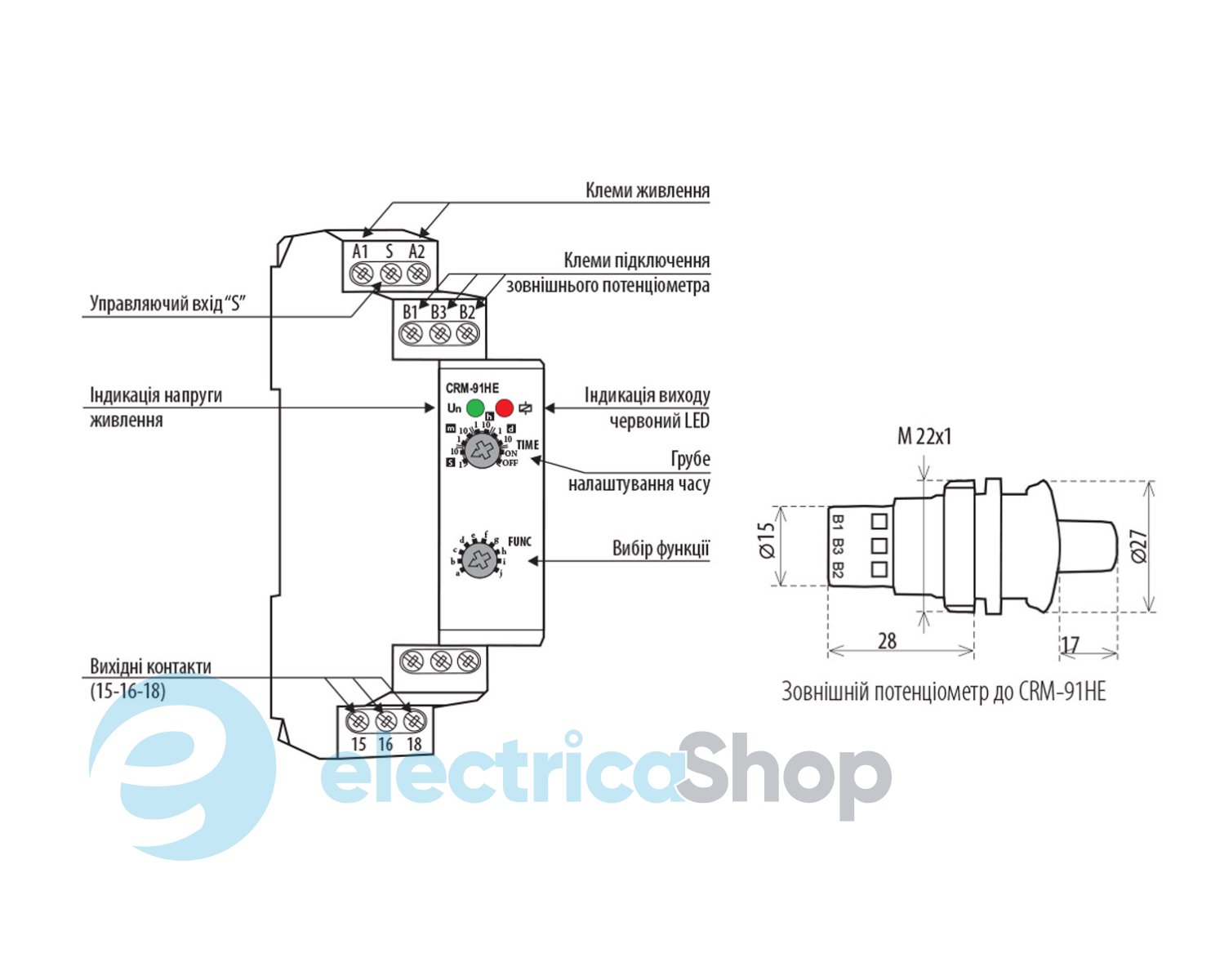 В реле CRM-91HE точная настройка значения времени производится с помощью внешнего потенциометра (постав. в комплекте с реле).
