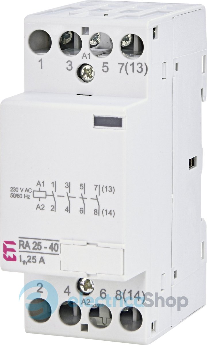 Контактор модульный RA 25-40 230V AC используются для дистанционного управления и автоматического контроля электрических устройств и оборудования в системах освещения, системах отопления, системах вентиляции, коммутации двигателей небольшой мощности и т.д.