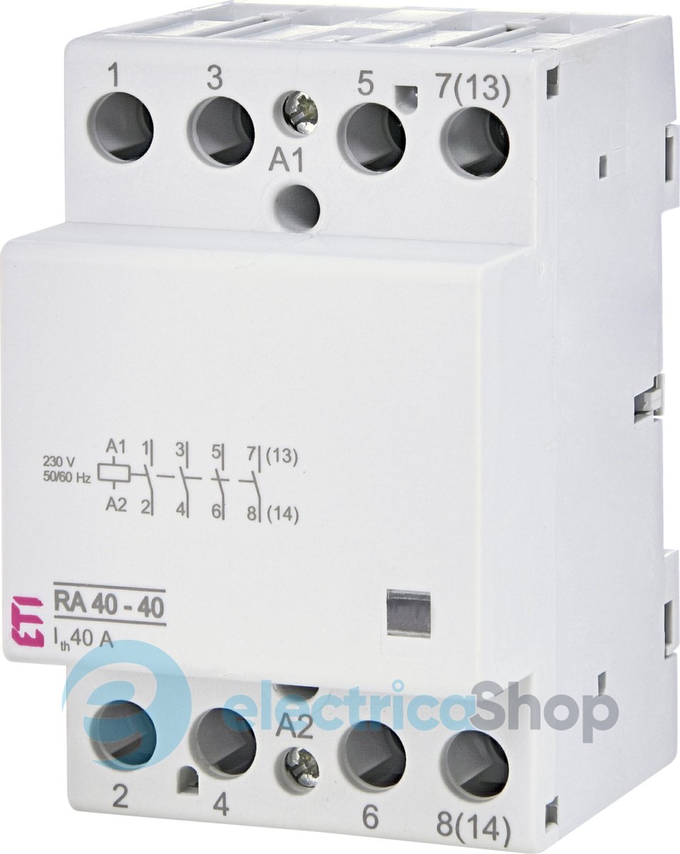 Контактор модульный RA 40-40 230V AC используются для дистанционного управления и автоматического контроля электрических устройств и оборудования в системах освещения, системах отопления, системах вентиляции, коммутации двигателей небольшой мощности и т.д.