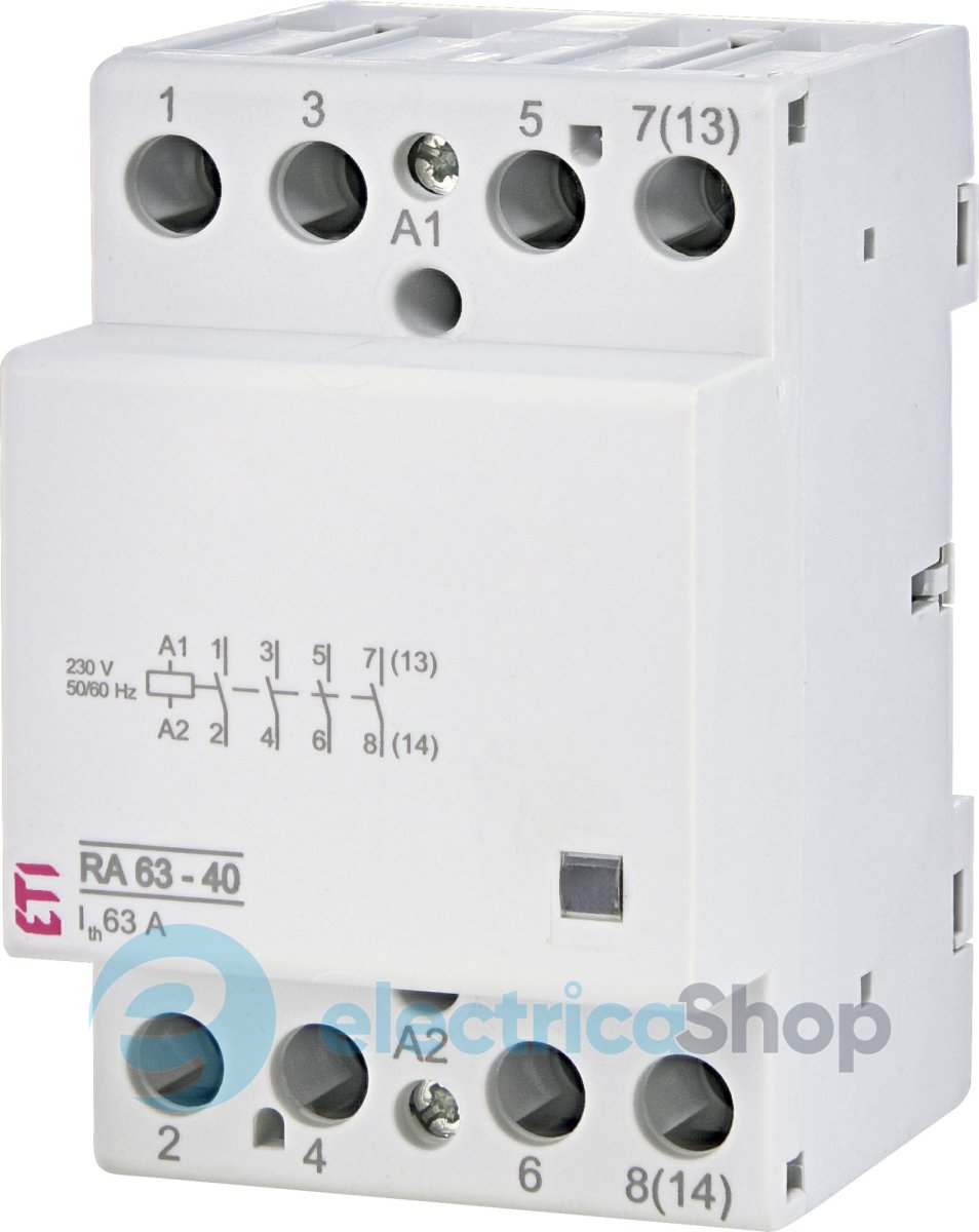 Контактор модульный RA 63-40 230V AC используются для дистанционного управления и автоматического контроля электрических устройств и оборудования в системах освещения, системах отопления, системах вентиляции, коммутации двигателей небольшой мощности и т.д.