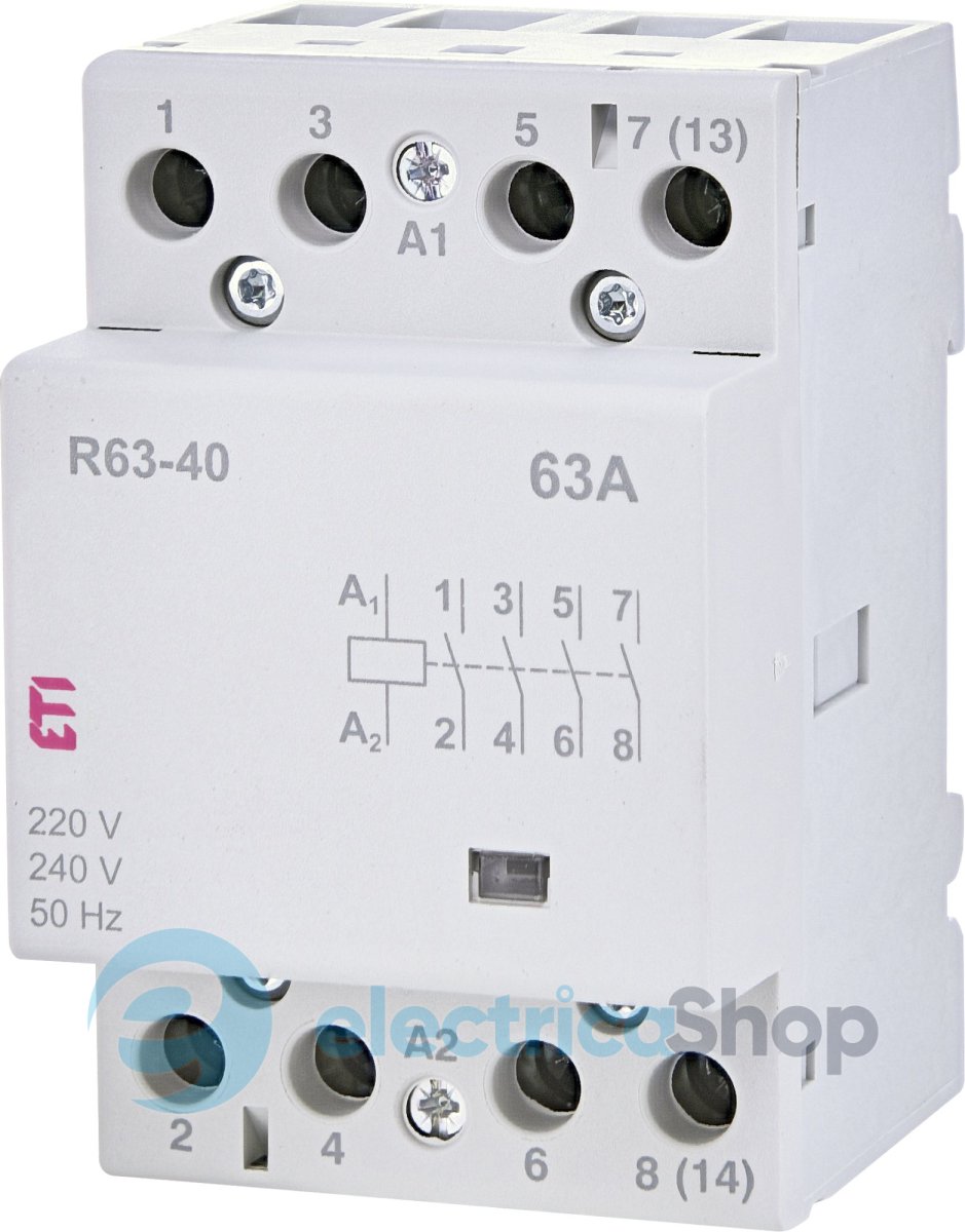 Контактор модульный R 63-40 230V AC используется для дистанционного управления и автоматического контроля электрических устройств и оборудования в системах освещения, системах отопления, вентиляции, коммутации двигателей небольшой мощности и т.д.