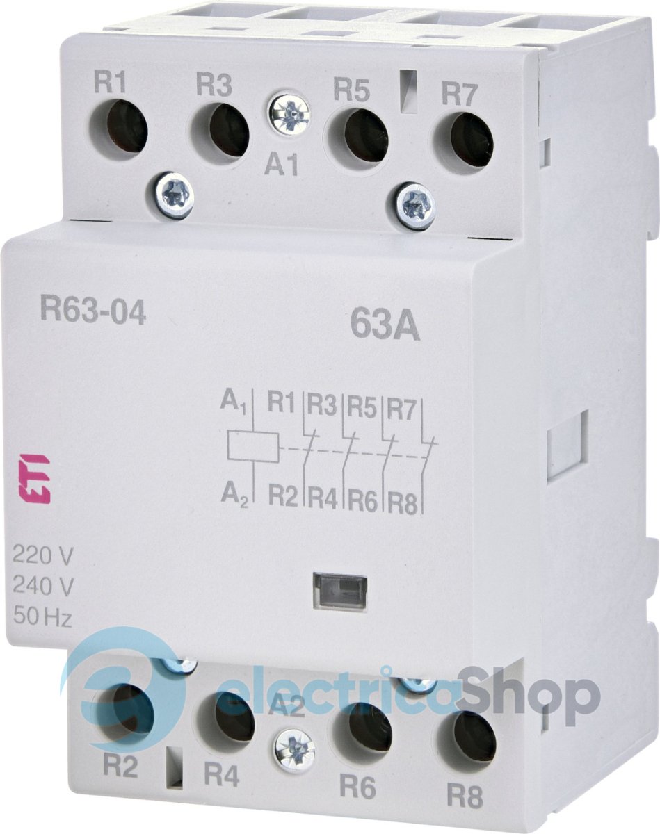 Контактор модульный R 63-04 230V AC используется для дистанционного управления и автоматического контроля электрических устройств и оборудования в системах освещения, системах отопления, вентиляции, коммутации двигателей небольшой мощности и т.д.