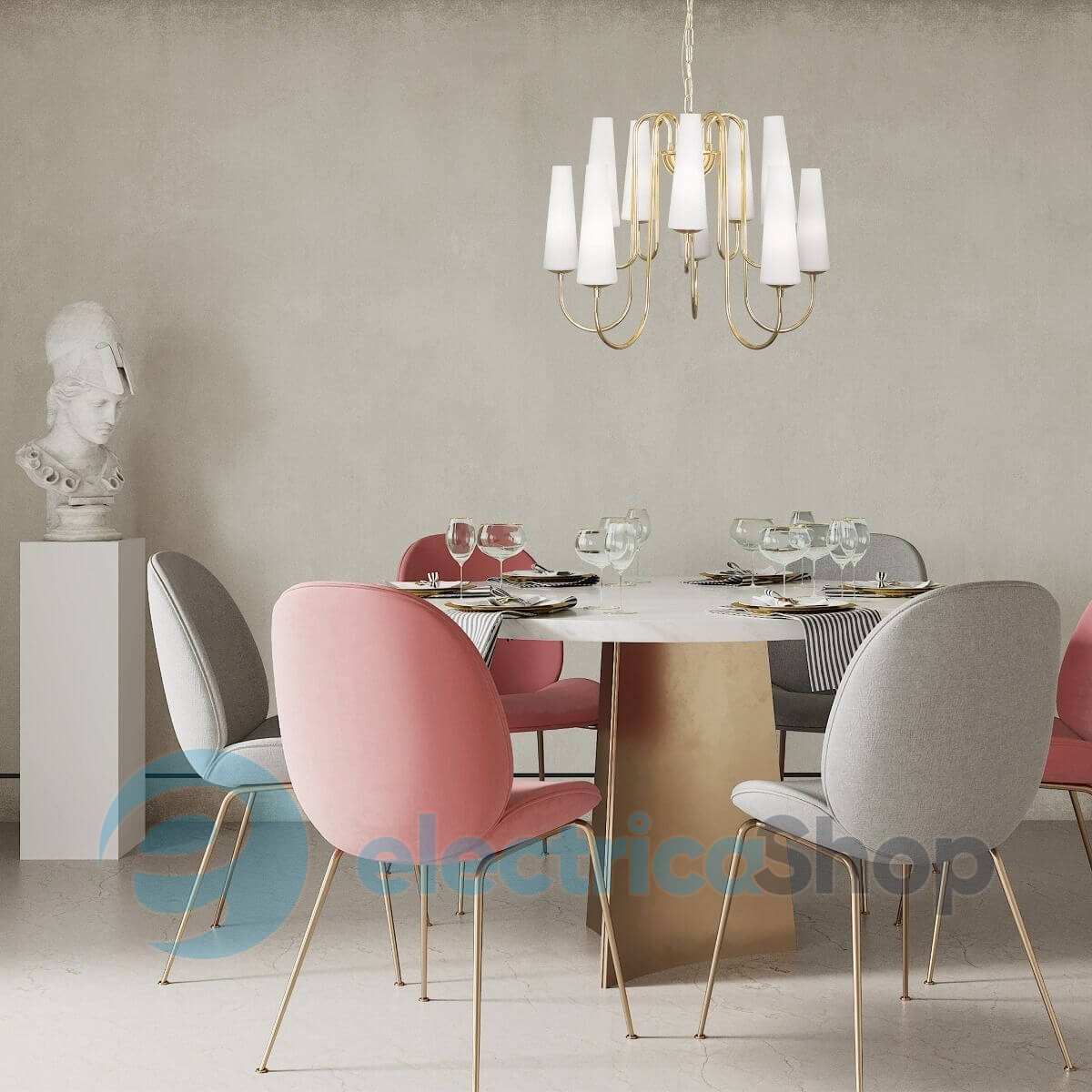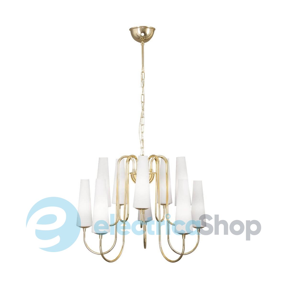 Люстра Zuma Line MAGNUM 10 1129 Gold 133867-025751 станет отличным декоративным решением для помещений, оформленных в стиле классика и модерн. Такой осветительный прибор будет изюминкой для современных дизайнерских интерьеров. Арматура изготовлена из металла, плафоны стеклянные.