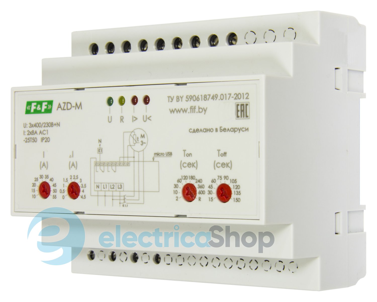 - Тип устройства: Реле контроля напряжения, Реле контроля фаз, Реле защиты электродвигателя