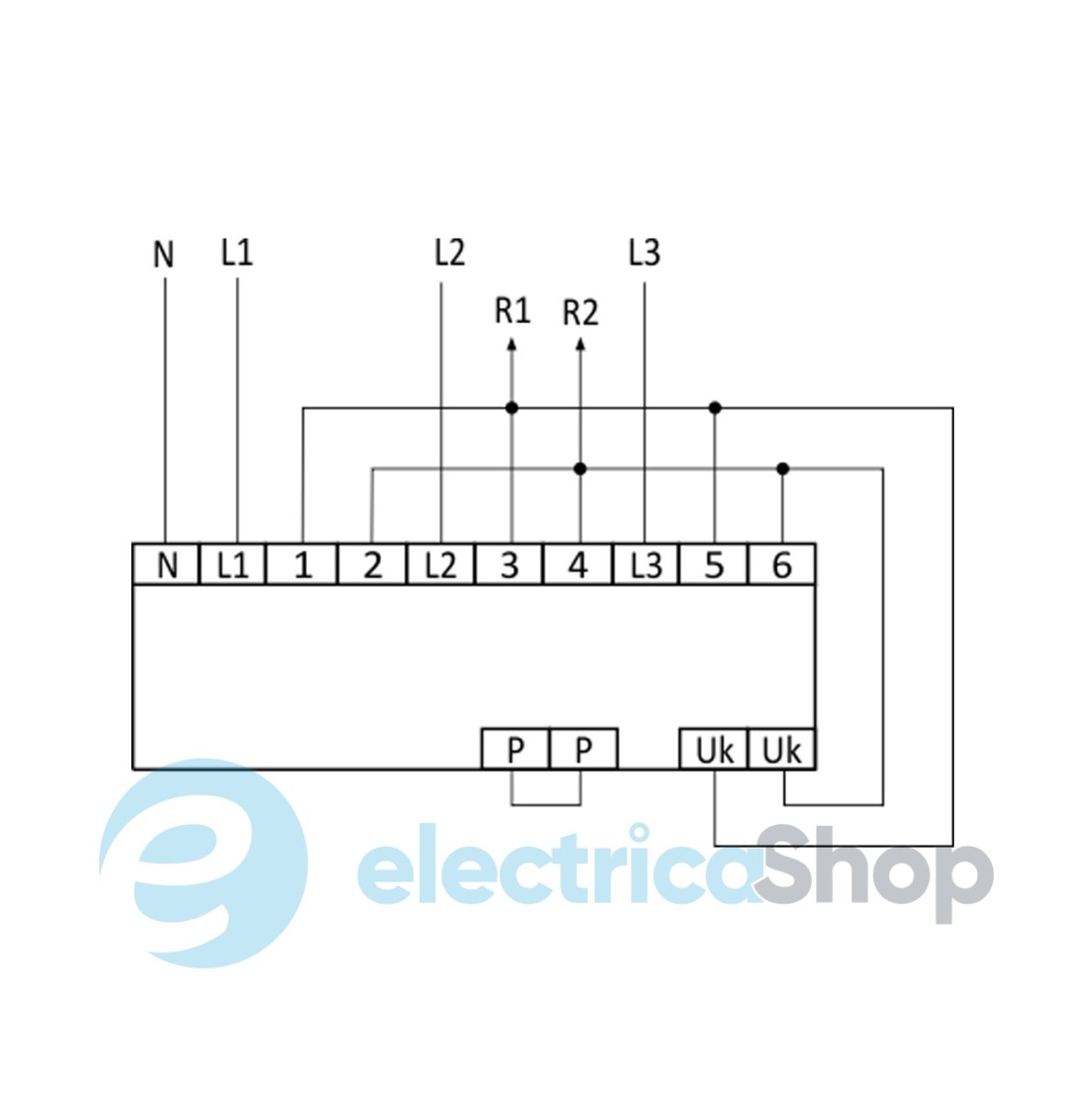 Функция B (с перемычкой P-P) Хорошая фаза направлена только на выход R1.Приоритетный режим: если из-за перегрузки невозможно подключить все устройства к одной фазе одновременно, то ключевые однофазные приемники подключаются к выходу R1 и будут получать питание, когда хотя бы одна фаза исправная. Вторичные нагрузки будут подключены к выходу R2 и будут работать только тогда, когда, по крайней мере, две фазы питания будут правильными. Опция работы устанавливается с помощью перемычки на клеммах P-P