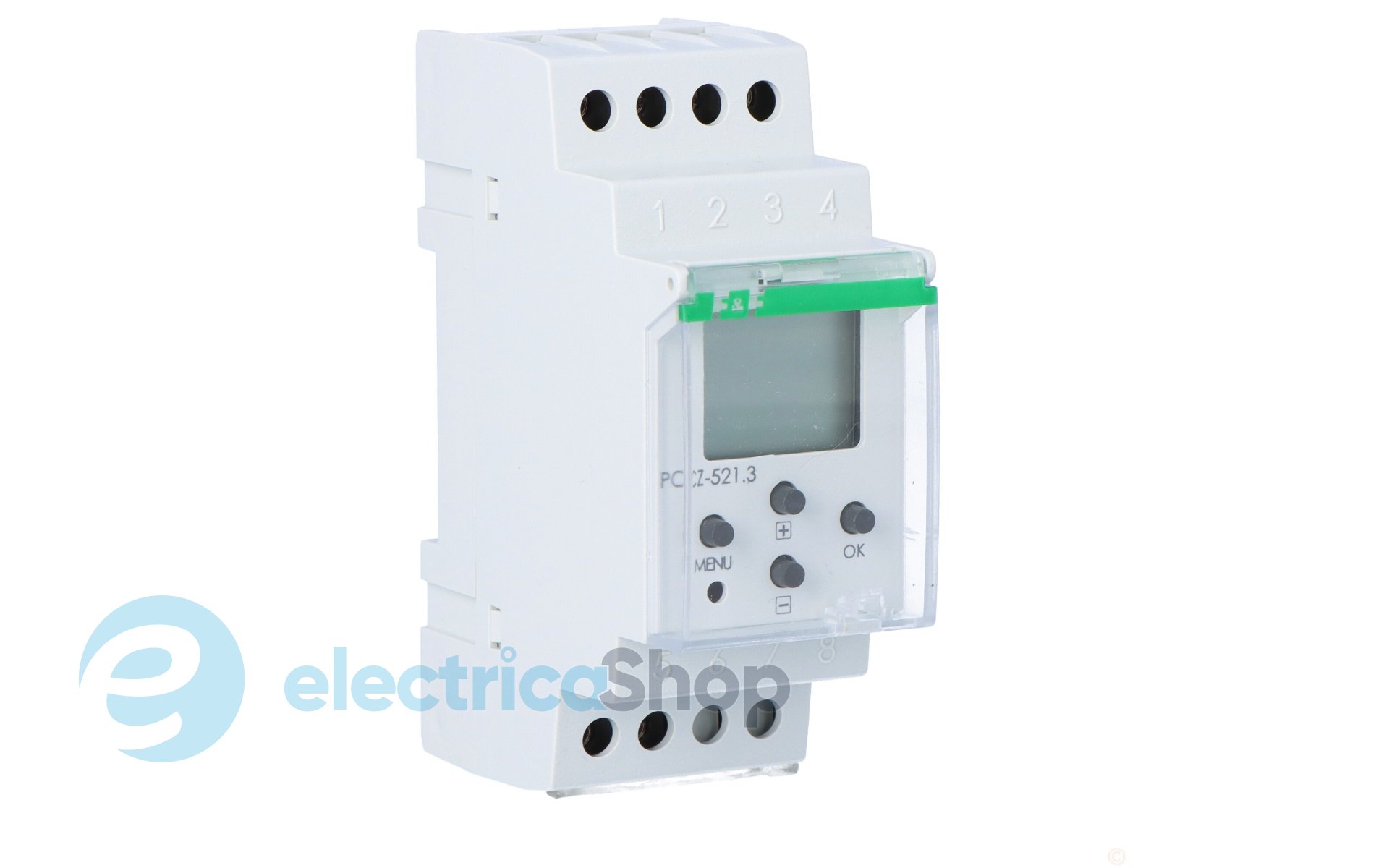 Таймер PCZ-521.3 включает и выключает нагрузку в запрограммированное время в циклах: недельный, суточный, рабочие (Пн – Пт) или выходные дни (Сб – Вс).