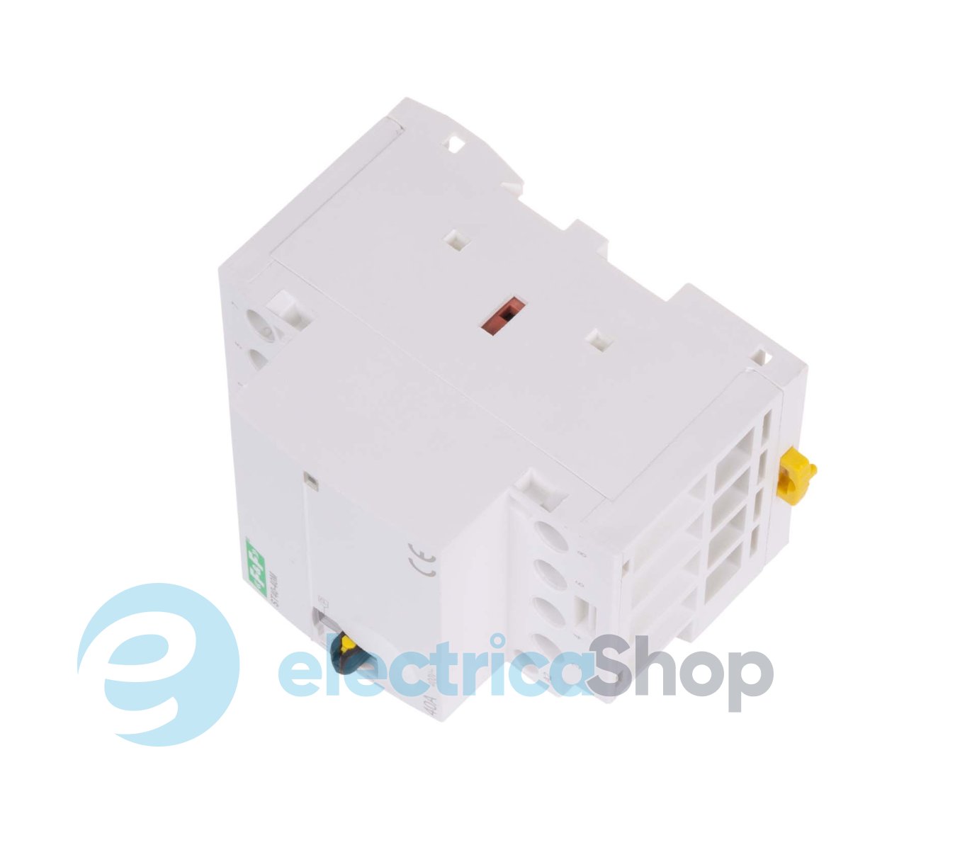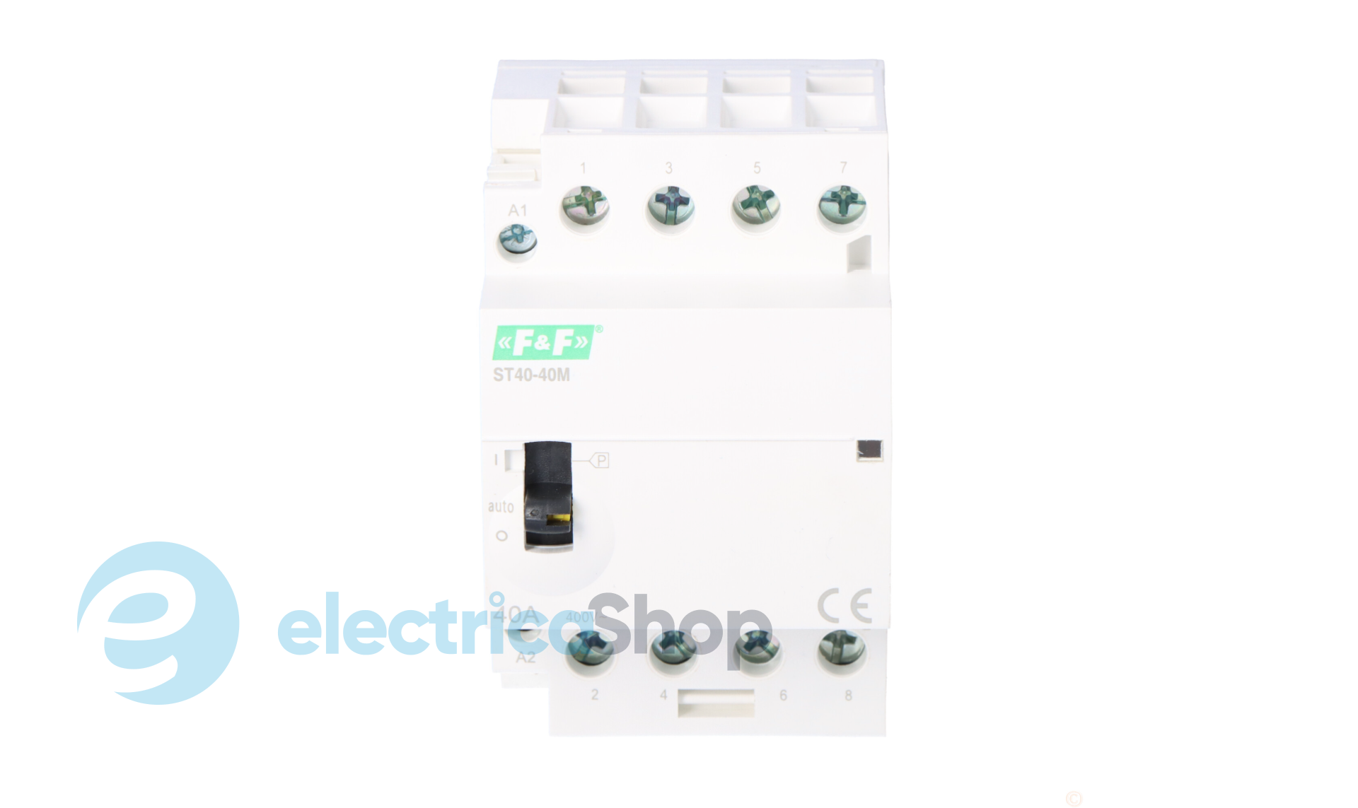Модульний електромагнітний контактор для монтажу на DIN-рейку в розподільному щитку. Перемикач на передній панелі дозволяє вручну управляти контактами контактора (незалежно від стану котушки). Це дозволяє підключати або від’єднувати навантаження вручну, наприклад, під час монтажу/обслуговування.