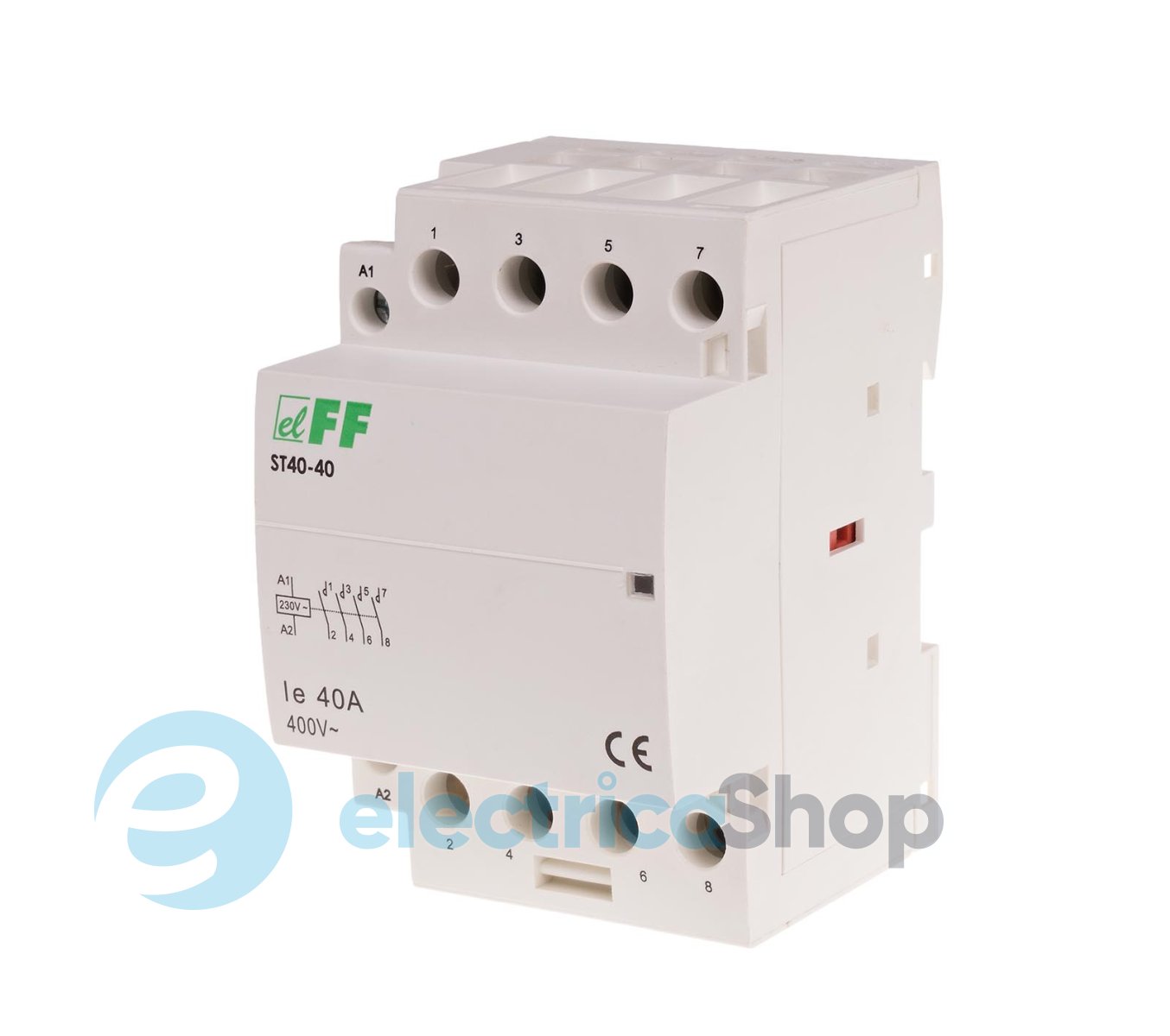 тип контакти струм AC1 нап. живлення потужнысть модулів вага клеми ST25-20 2NO 25 A 230 В AC 1,2 Вт 1 106 г 4 мм² ST25-20/24 2NO 25 A 24 В AC 1,2 Вт 1 106 г 4 мм² ST25-11 1NO+1NC 25 A 230 В AC 1,2 Вт 1 106 г 4 мм² ST25-30 3NO 25 A 230 В AC 4,0 Вт 2 168 г 6 мм² ST25-31 3NO+1NC 25 A 230 В AC 4,0 Вт 2 168 г 6 мм² ST25-31/24 3NO+1NC 25 A 24 В AC 4,0 Вт 2 168 г 6 мм² ST25-40 4NO 25 A 230 В AC 4,0 Вт 2 168 г 6 мм² ST25-40/24 4NO 25 A 24 В AC 4,0 Вт 2 168 г 6 мм² ST25-04 4NC 25 A 230 В AC 4,0 Вт 2 168 г 6 мм² ST25-22 2NO+2NC 25 A 230 В AC 4,0 Вт 2 168 г 6 мм² ST40-40 4NO 40 A 230 В AC 6,4 Вт 3 241 г 16 мм² ST40-40/24 4NO 40 A 24 В AC 6,4 Вт 3 241 г 16 мм² ST40-31 3NO+1NC 40 A 230 В AC 6,4 Вт 3 241 г 16 мм² ST63-40 4NO 63 A 230 В AC 6,4 Вт 3 241 г 16 мм² ST63-40/24 4NO 63 A 24 В AC 6,4 Вт 3 241 г 16 мм² ST63-31 3NO+1NC 63 A 230 В AC 6,4 Вт 3 241 г 16 мм² ST100-20 2NO 100 A 230 В AC 6,4 Вт 3 305 г 25 мм² ST100-40 4NO 100 A 230 В AC 9,0 Вт 6 617 г 25 мм² - Напруга живлення: 230 В AC