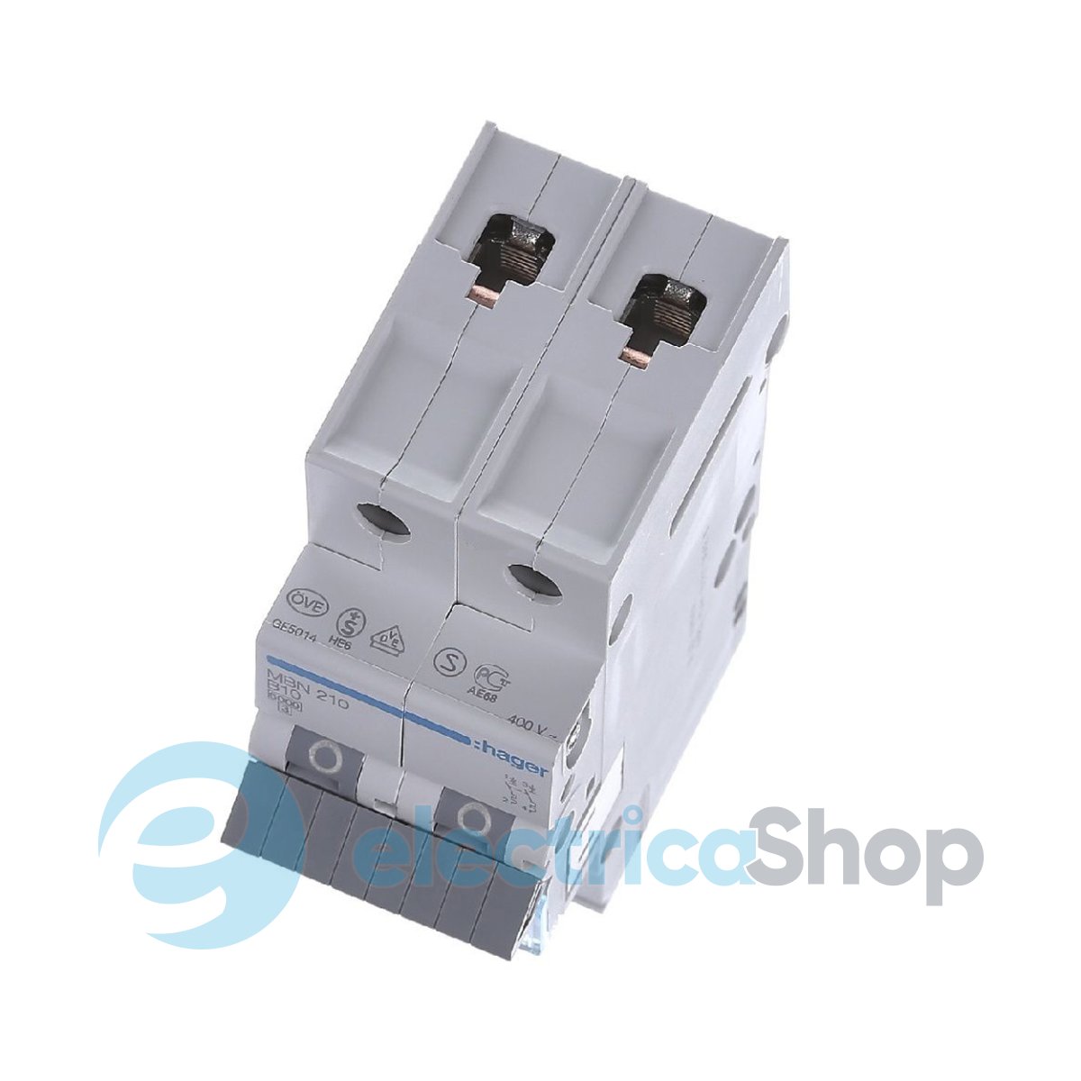 • Коммутационная способность : Автоматический выключатель должен быть способен безопасно отключать ожидаемый максимальный ток короткого замыкания в месте повреждения. Поэтому ожидаемый максимальный ток короткого замыкания всегда должен быть меньше коммутационной способности автоматического выключателя. Автомат Hager MBN240 предназначен для электросетей с максимальным током короткого замыкания 6кА, что является достаточным параметром для бытовых и промышленных сетей.