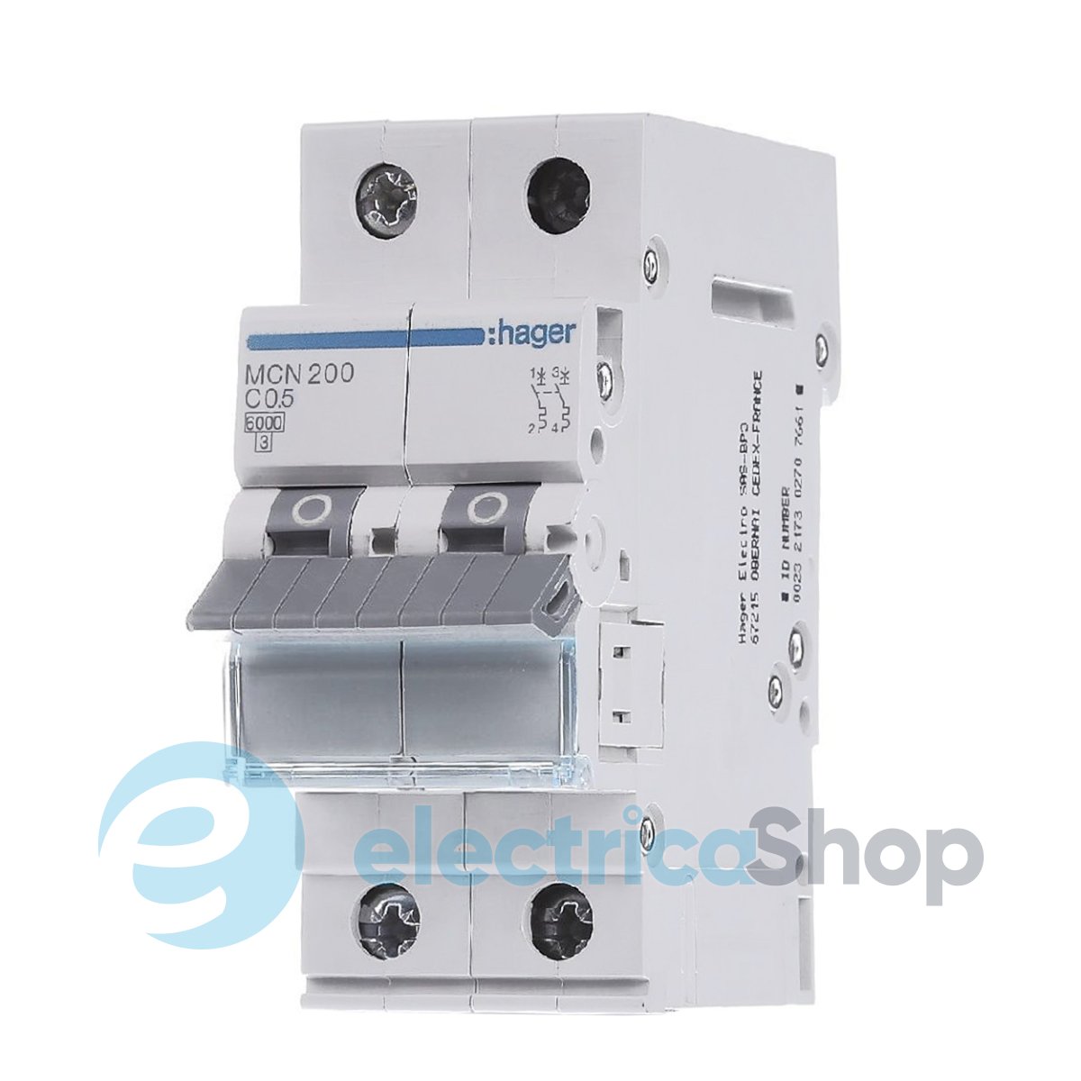 Автоматический выключатель 2-п, 0.5A, C, 6kA, Hager MCN200