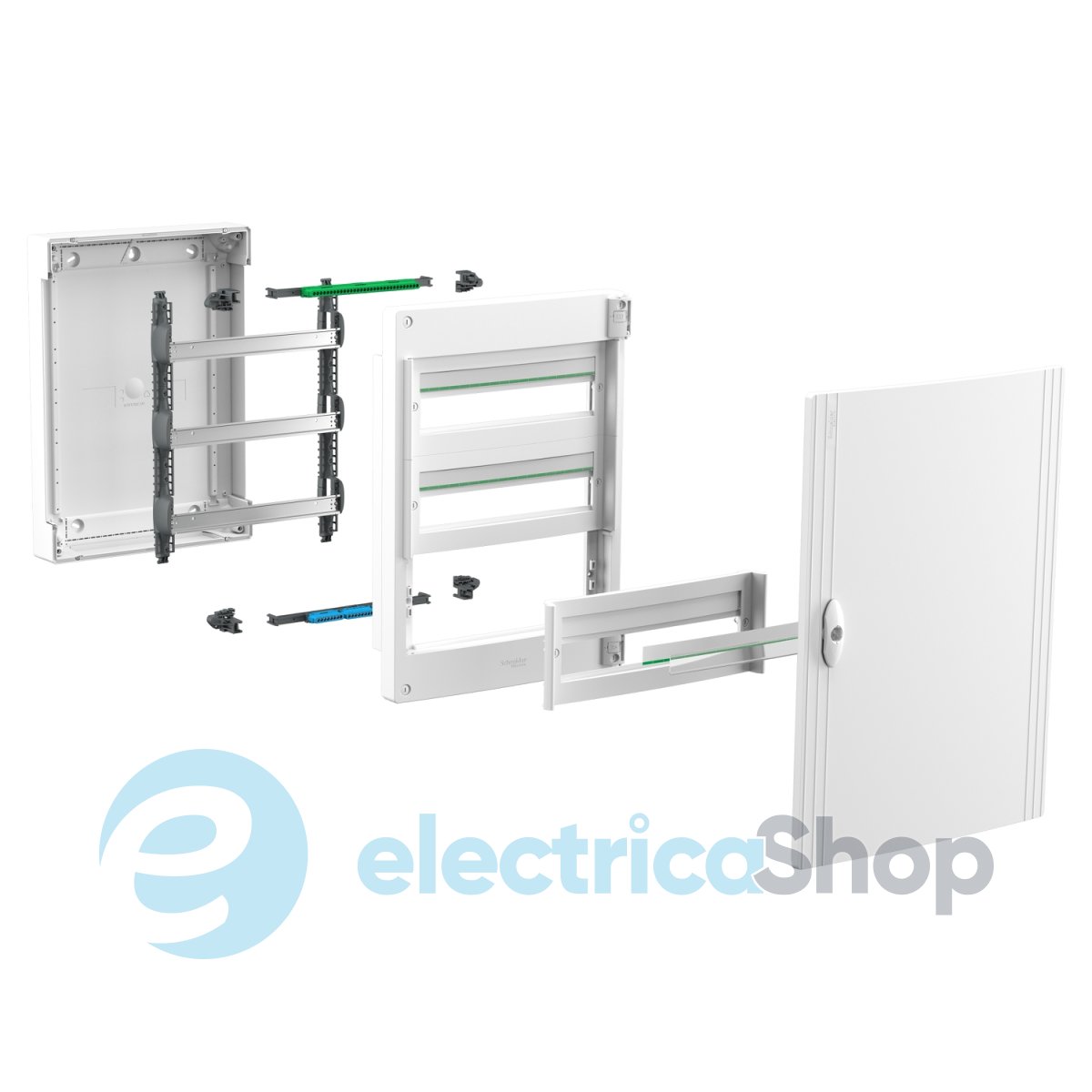 Электрический Щит LVSXQ318 предназначен для навесного монтажа внутри помещений и укомплектован белой дверью и клеммным блоками с (винтовым зажимом).