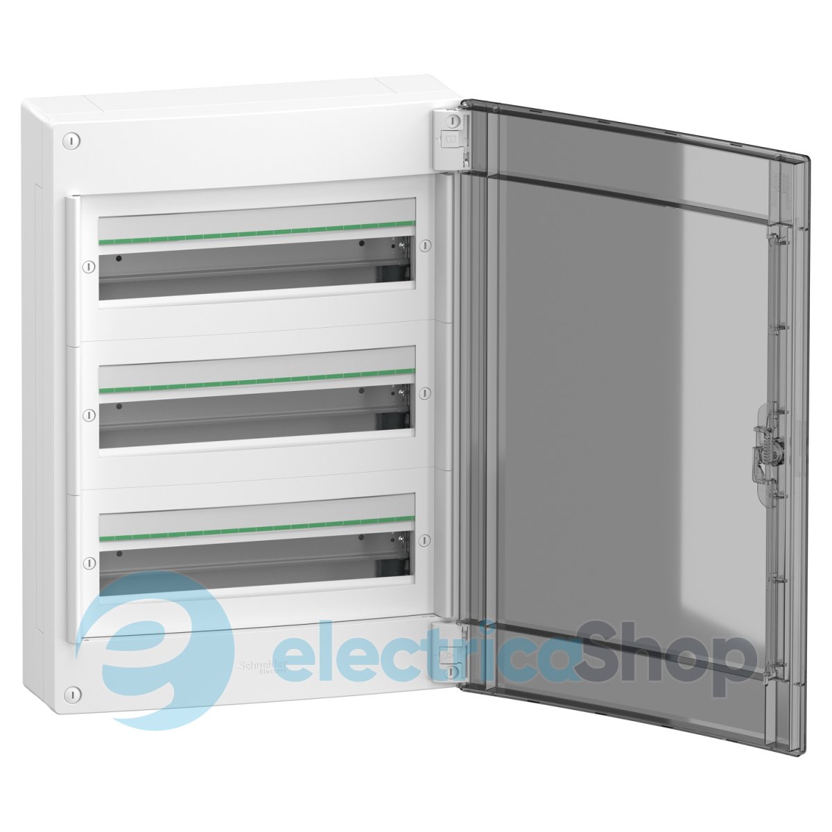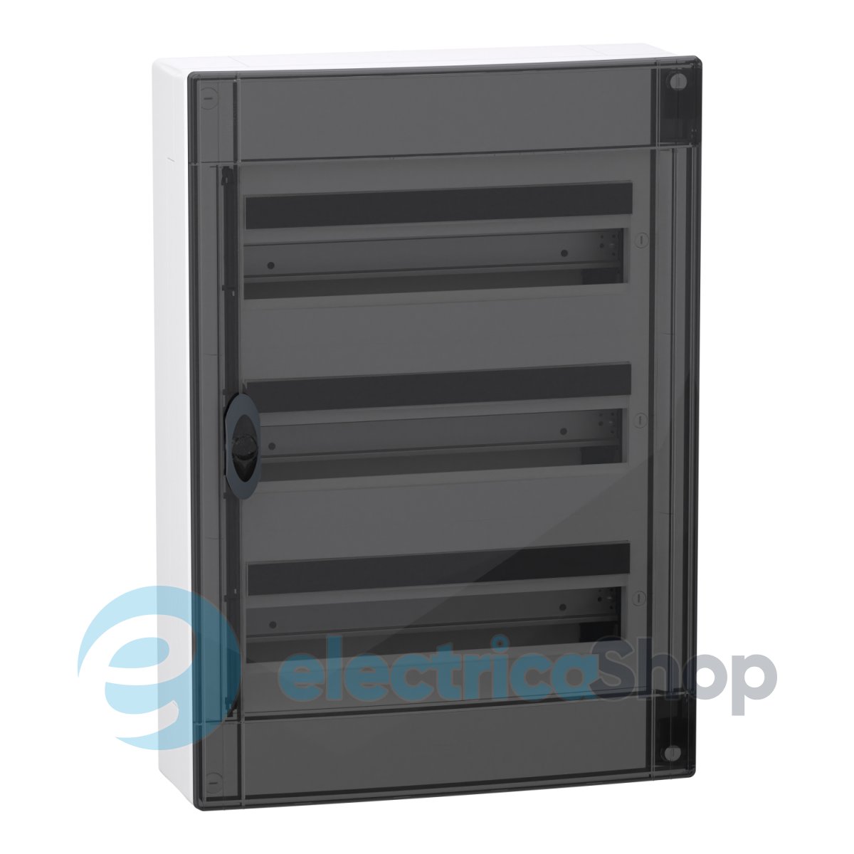 Электрический Щит LVSXR318 предназначен для навесного монтажа внутри помещений и укомплектован дымчатой дверью и клеммными блоками заземления / нуля с винтовым зажимом проводников.