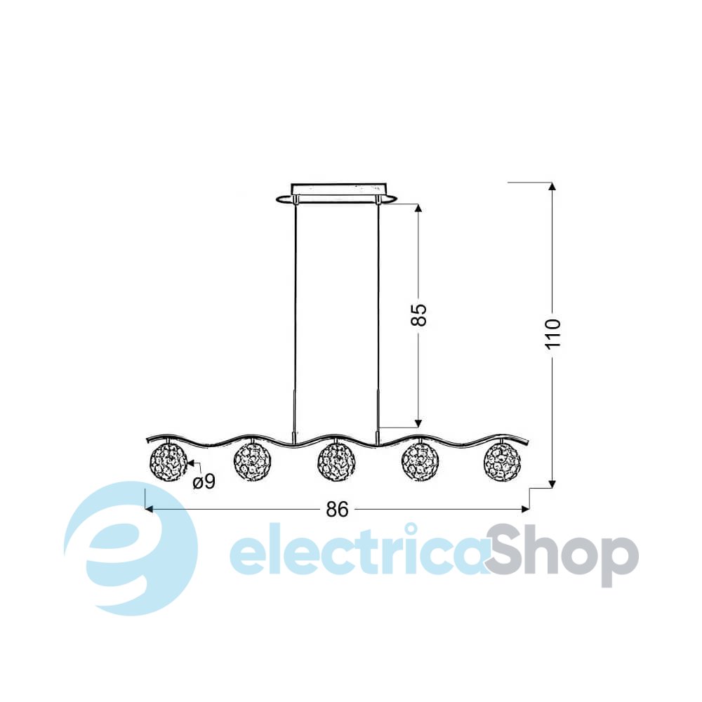 - Цвет плафонов: Прозрачный, Хром