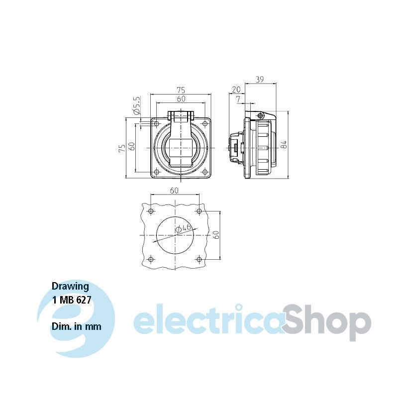 Розетка панельна типу Schuko 16А 2п+З 230В від MENNEKES зі ступенем захисту IP68. Без шторок захисту від дітей. Гвинтові клеми. Має байонетне кільце та кришку на пружині, для забезпечення степеня захисту IP68 навіть у непідключеному стані. Квадратний фланець 75х75 мм, з чотирма отворами для кріплення 60х60 мм. Країна виробництва – Німеччина.