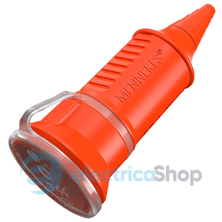 Розетка кабельна типу Schuko 16А 2п+З 230В від MENNEKES помаранчевого кольору з захисною кришкою зі ступенем захисту IP44. Має комбінований PE провідник відповідно до німецького та французсько-бельгійського стандарту. Гвинтові клеми. Підходить для підключення кабелів з кількістю жил та перетином до 3 x 2.5 мм², наприклад типу H07RN-F. Кабельний ввід виконаний у вигляді гумового конуса що має східчасту структуру, яка підрізається відповідно до діаметра кабелю, що підключається. Країна виробництва – Німеччина.